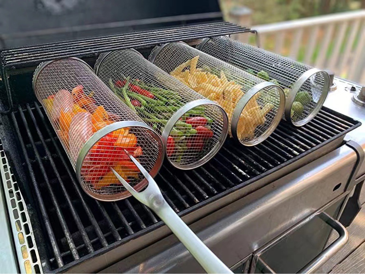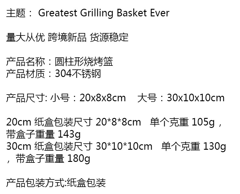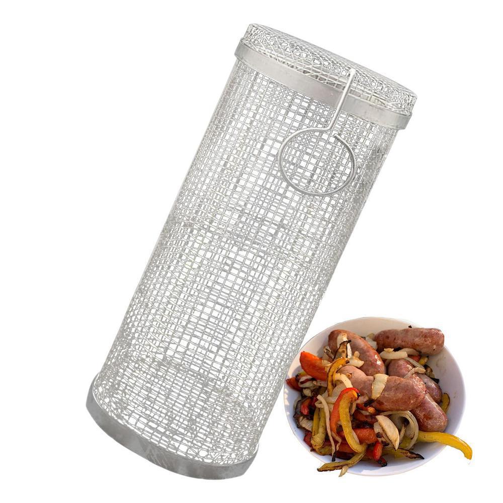 Zibo 바베큐 304 스테인레스 스틸 바베큐 실린더 야외 바베큐 야채 그물 원통형 롤러 바베큐 케이지스토어 가기