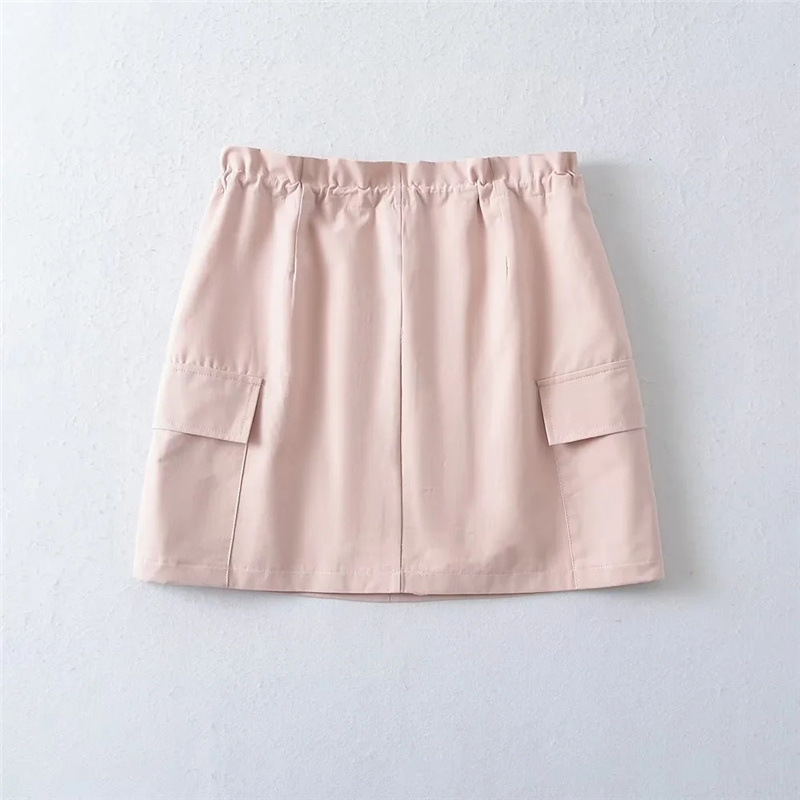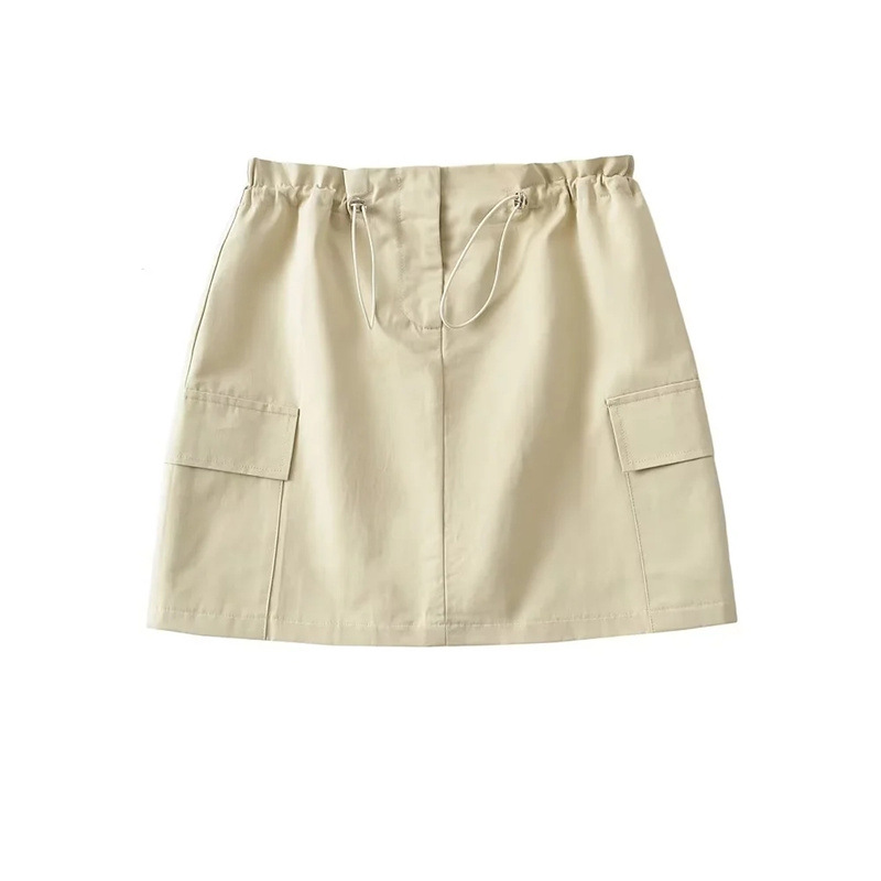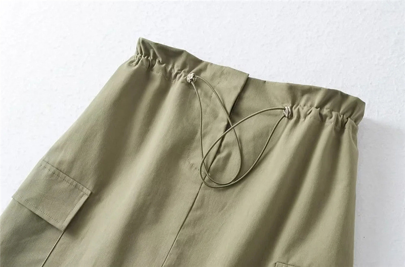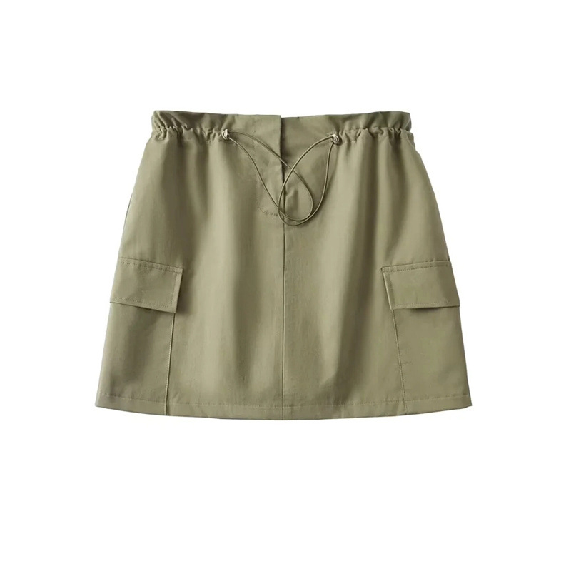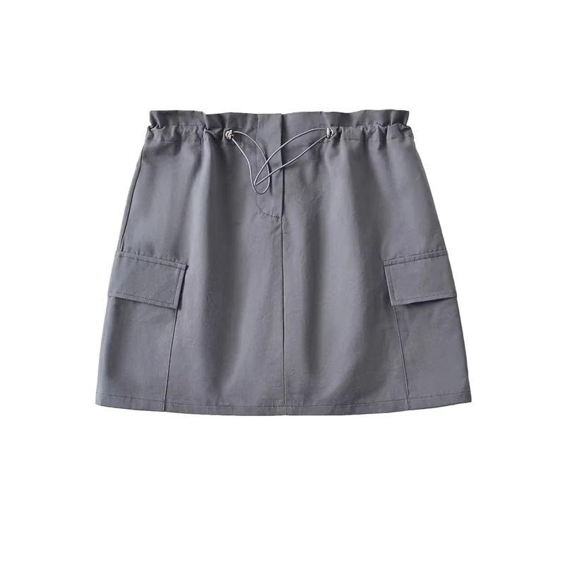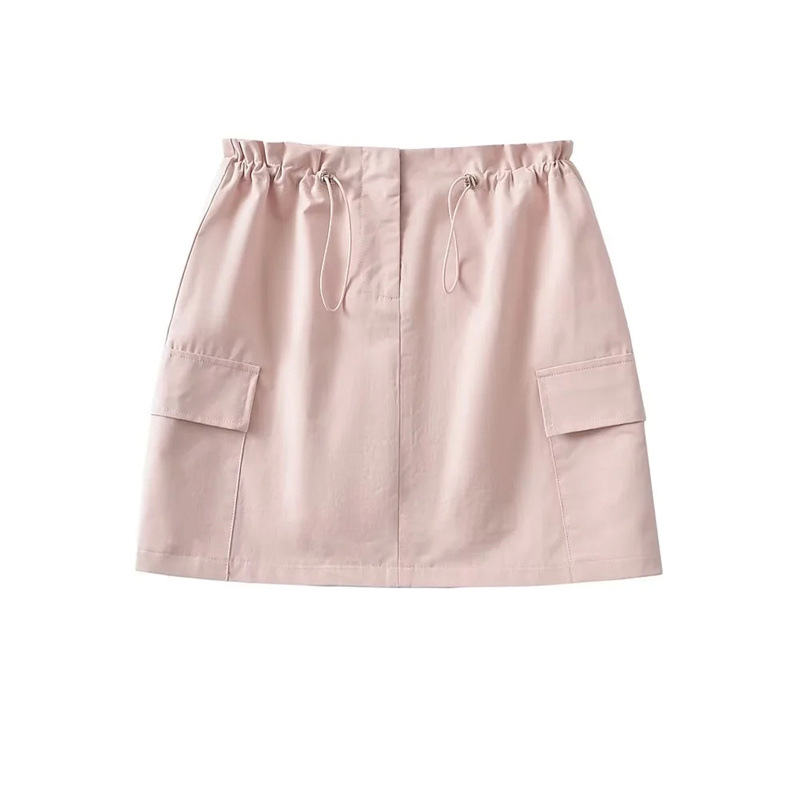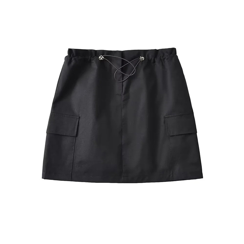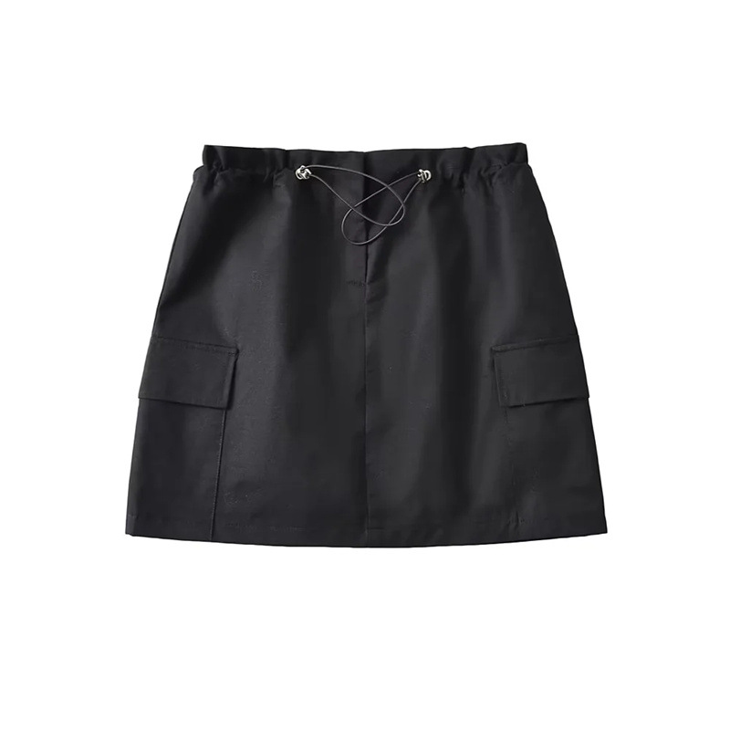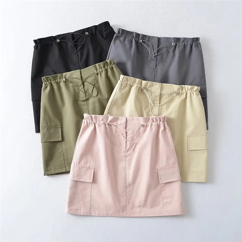 유럽과 미국 스타일 포켓 워크 스커트 여름 새로운 높은 허리 탄성 드로우 스트링 레이스 힙 스커트 여성의 안티 라이트