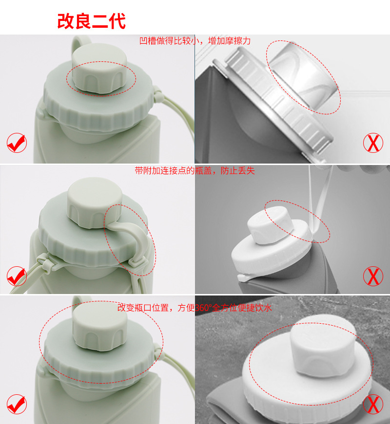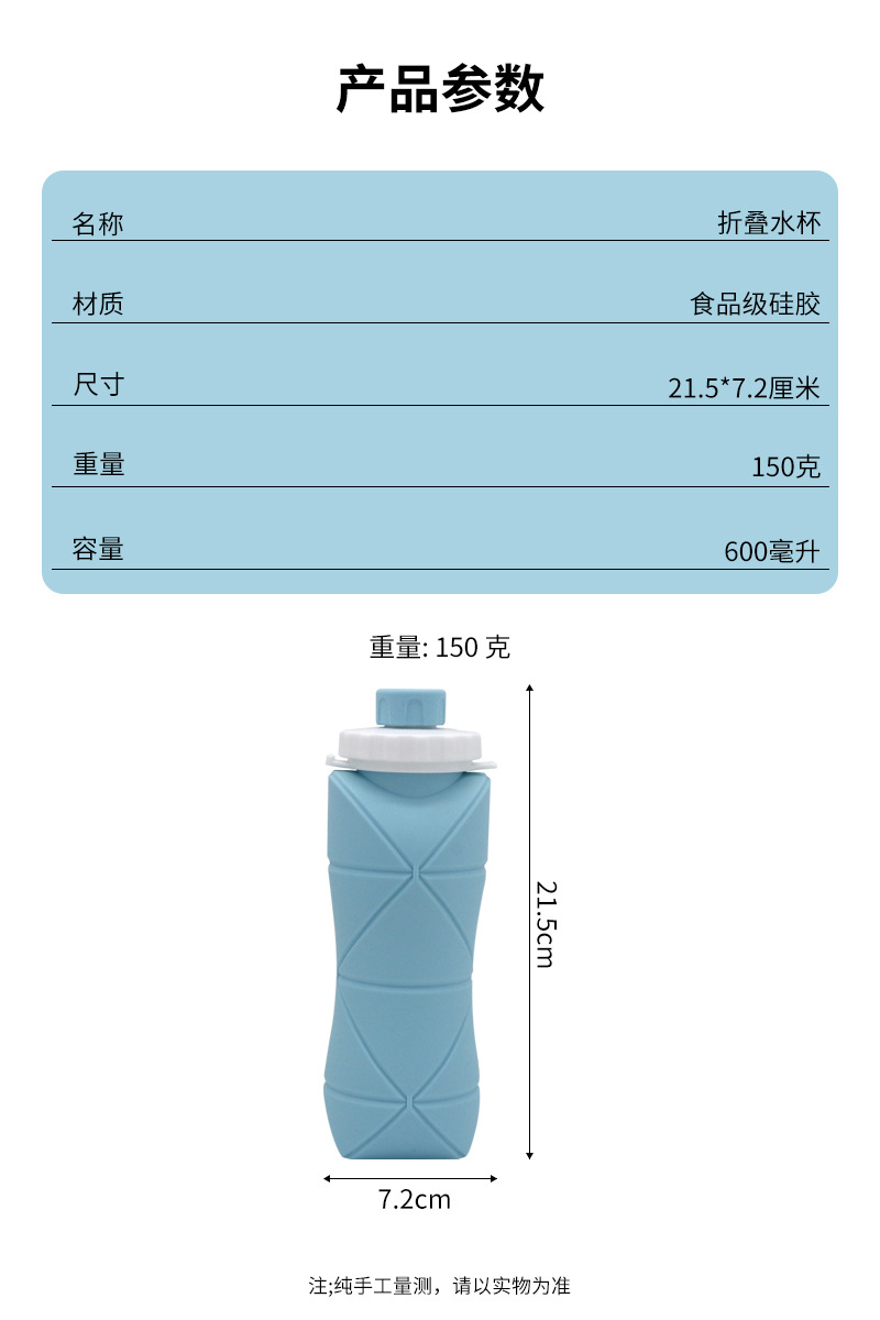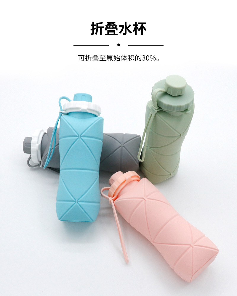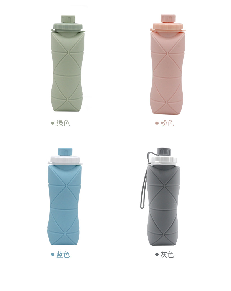 두꺼운 실리콘 접이식 워터 컵 사이클링 물병 600ml 여행 야외 러닝 피트니스 텔레스코픽 접이식 컵 재고 있음
