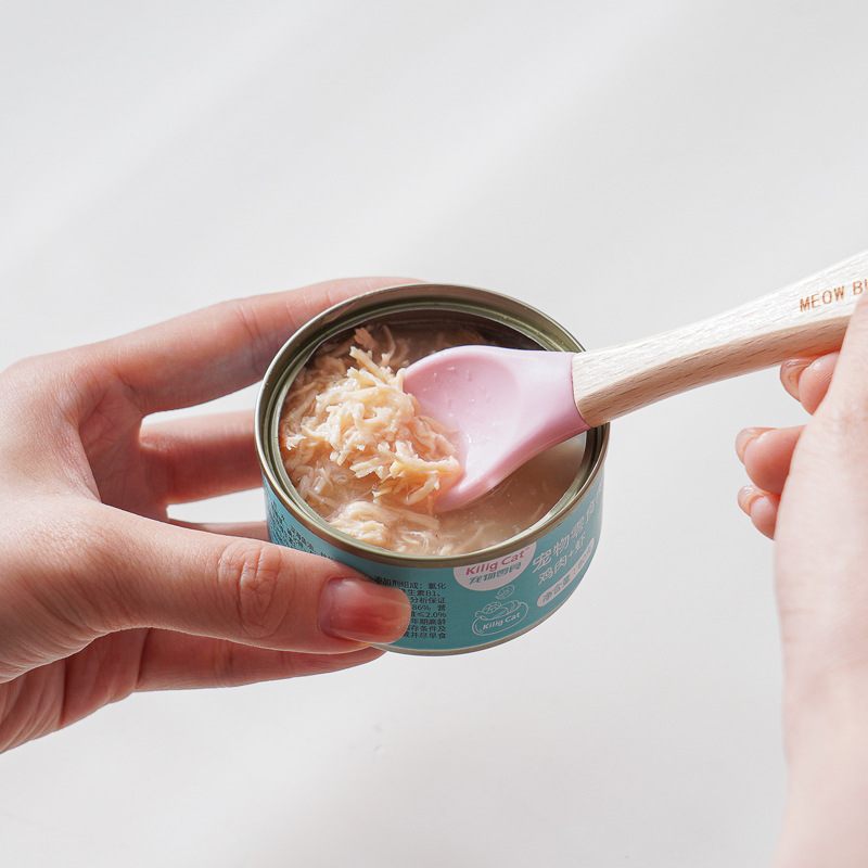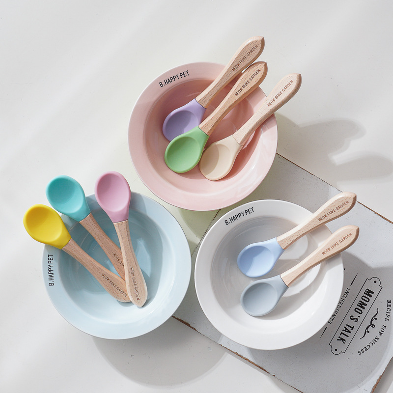통조림 애완 동물 고양이 스푼 나무 손잡이 실리콘 이유식 등급 재료 새끼 고양이 젖은 음식 수유 스푼 애완 동물 용품스토어 가기