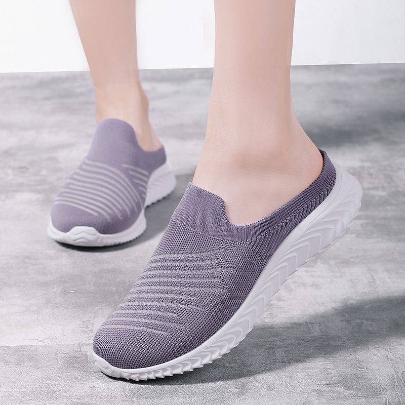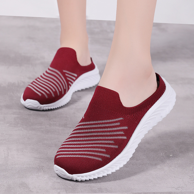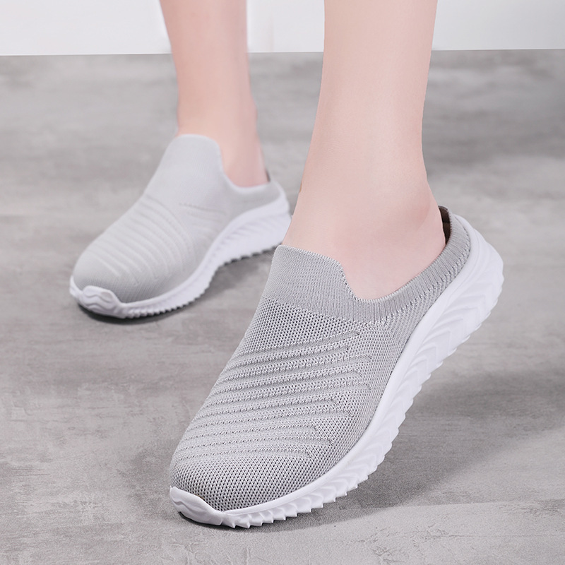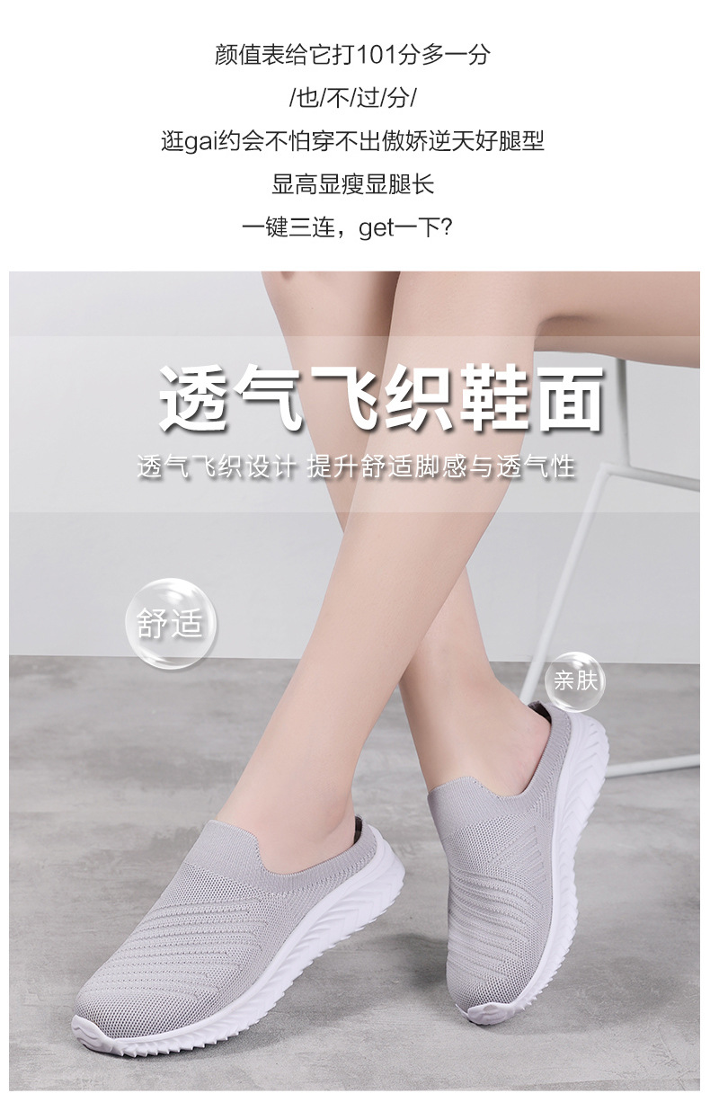 크로스 보더 봄과 여름 플러스 사이즈 플라잉 위버 여성 신발 경량 부드러운 바닥 운동화 반 견인 라운드 발가락 캐주얼 통기성 메쉬 신발스토어 가기
