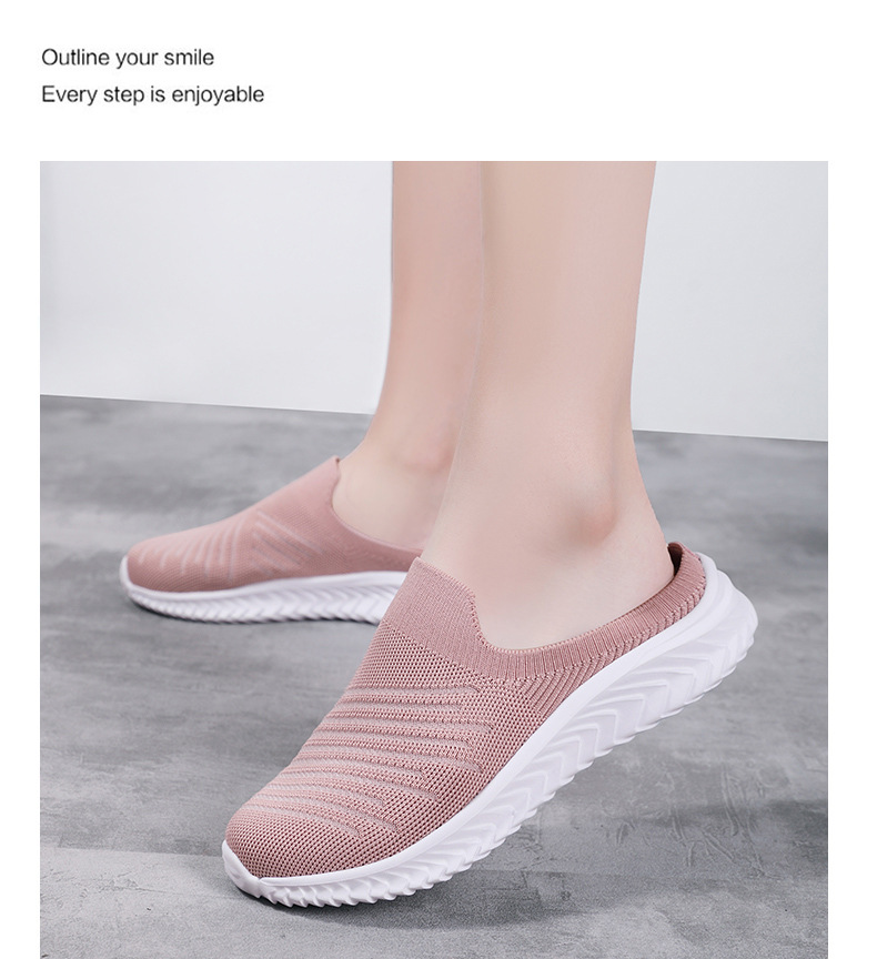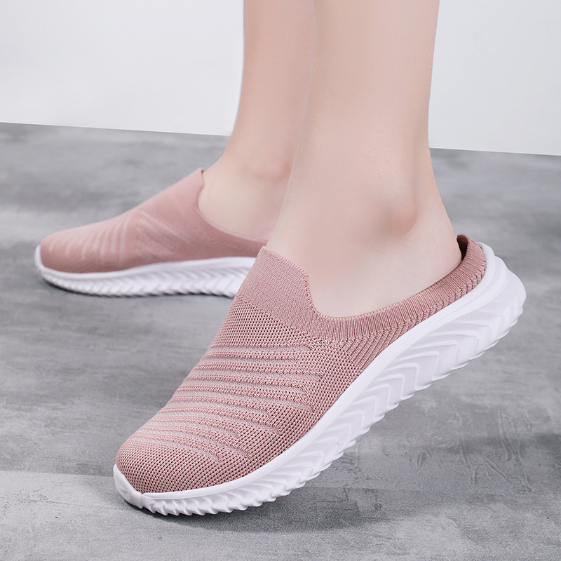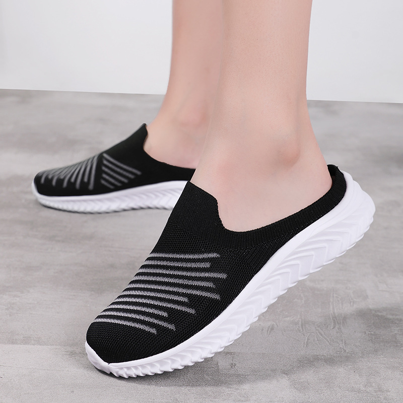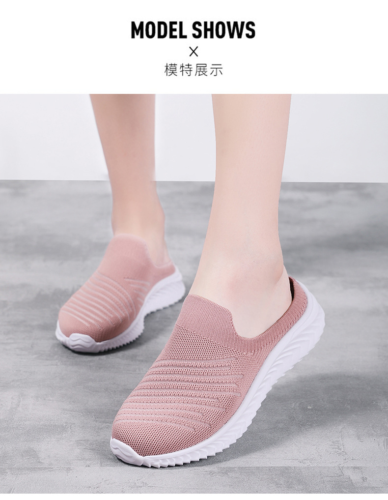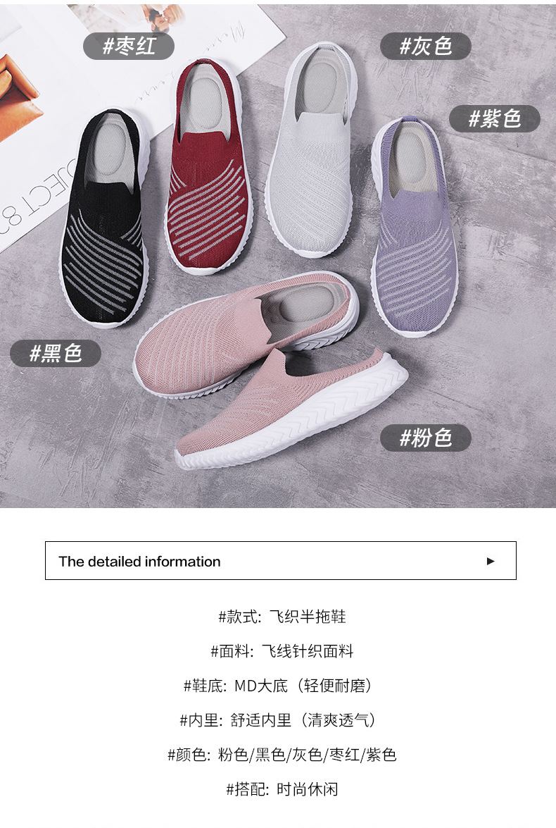 크로스 보더 봄과 여름 플러스 사이즈 플라잉 위버 여성 신발 경량 부드러운 바닥 운동화 반 견인 라운드 발가락 캐주얼 통기성 메쉬 신발