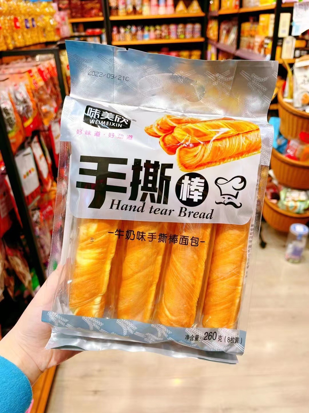 전체 케이스 도매 손으로 찢은 빵 패스트 푸드 아침 식사 영양 그물 빨간 사무실 간식 우유 맛 손으로 찢은 빵 스틱스토어 가기