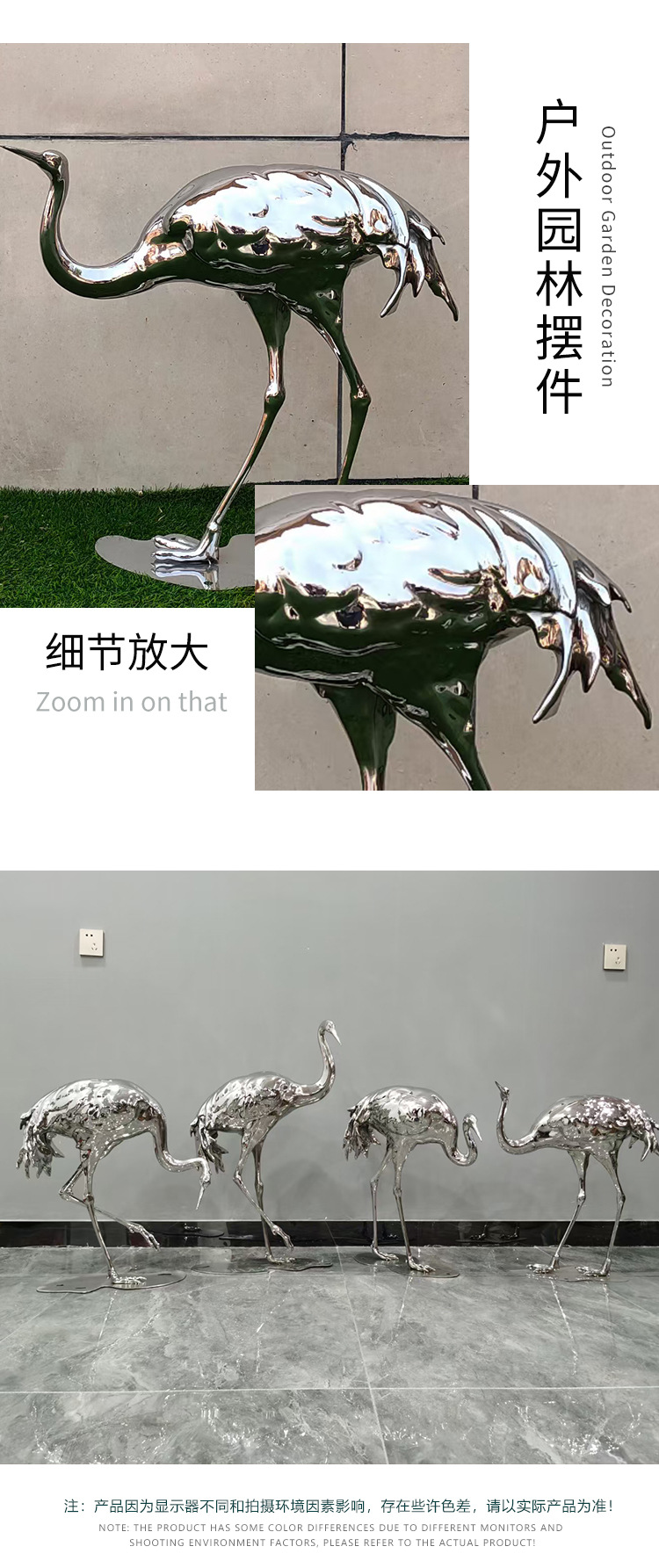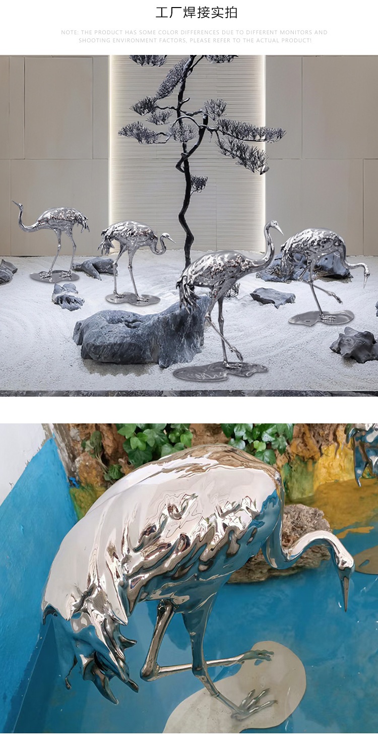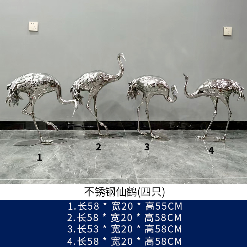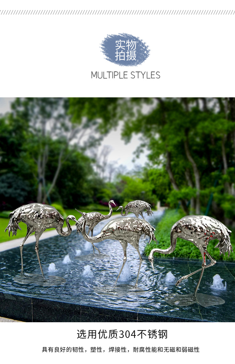 야외 스테인레스 스틸 금속 시뮬레이션 크레인 거울 조각 수영장 조경 호텔 판매 사무실 정원 장식 장식품스토어 가기