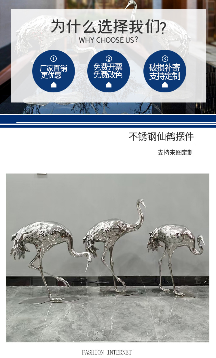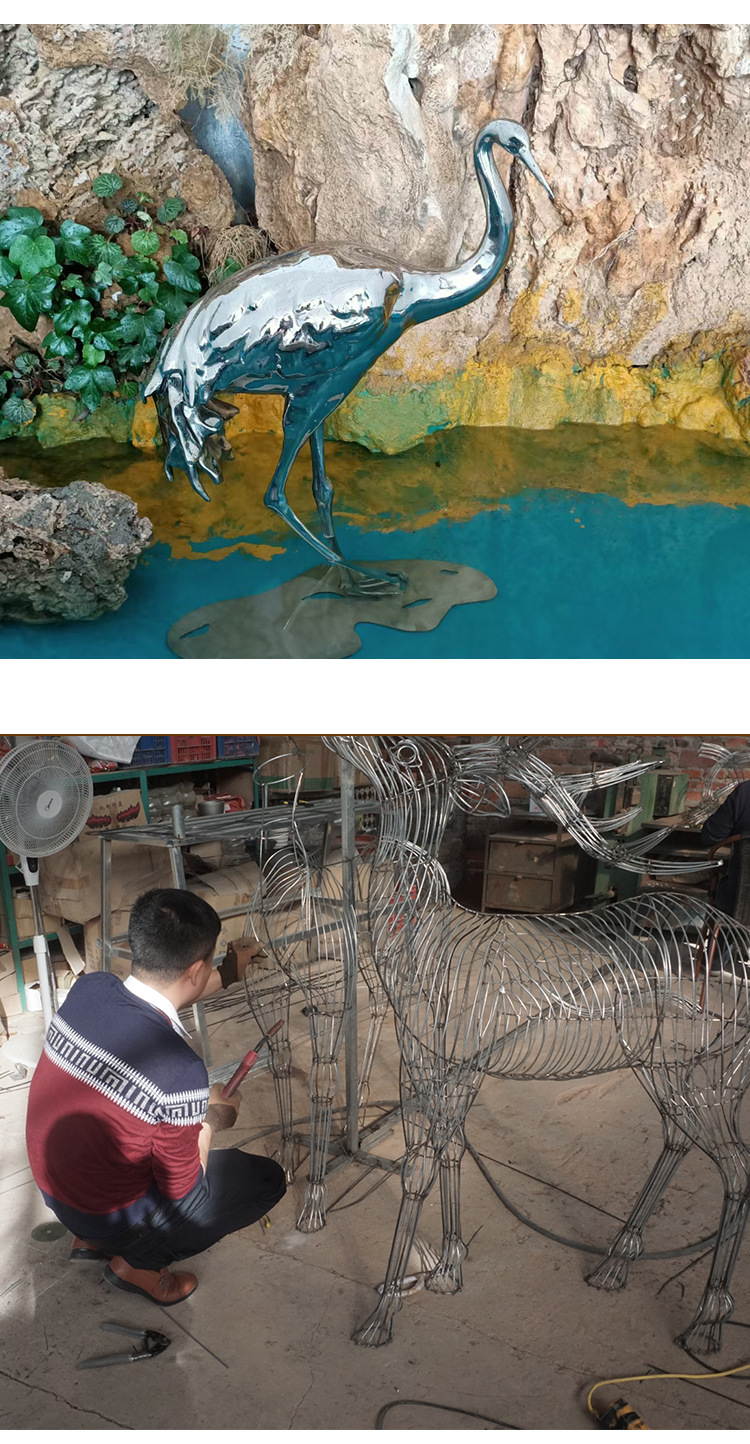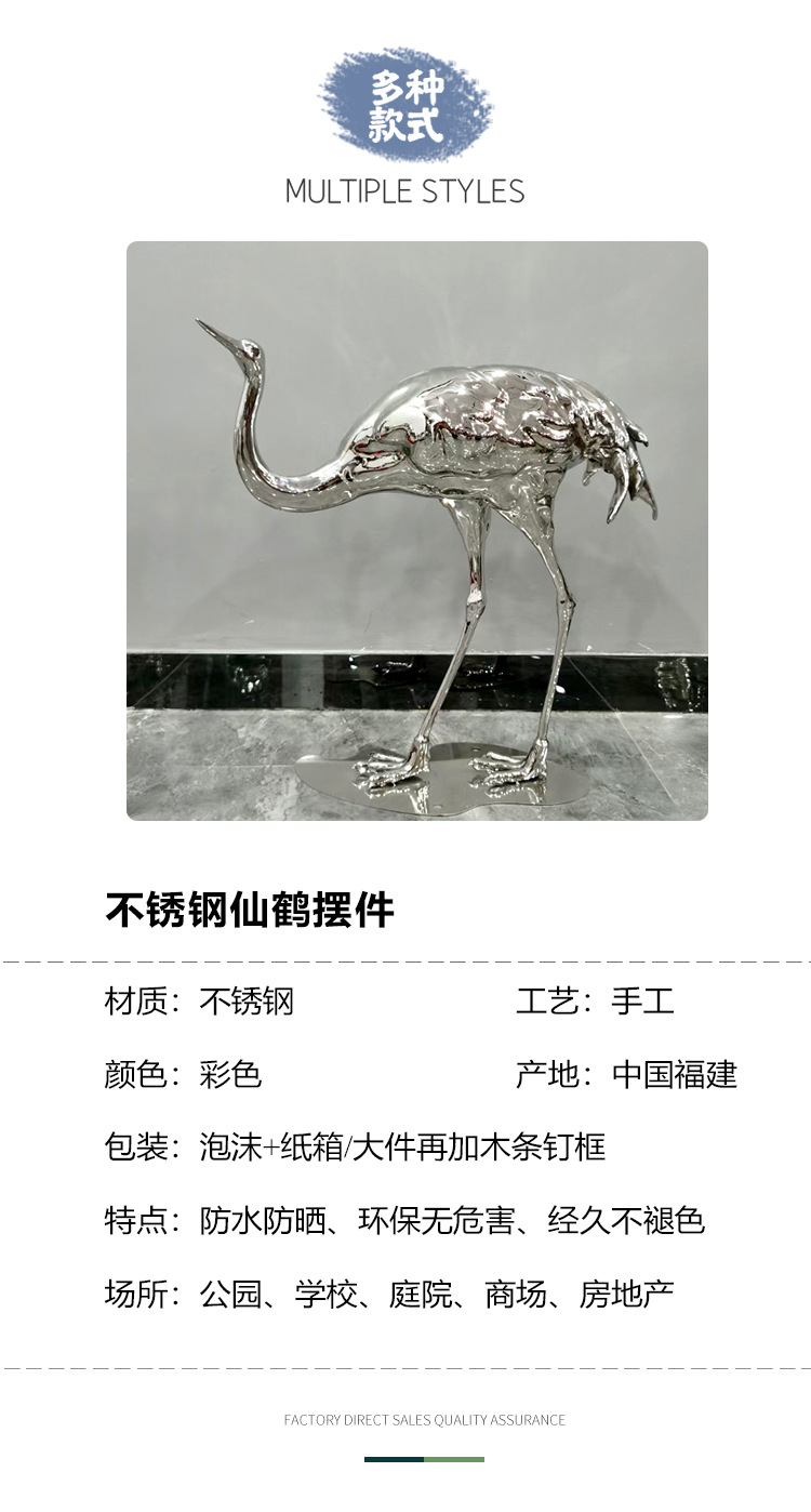 야외 스테인레스 스틸 금속 시뮬레이션 크레인 거울 조각 수영장 조경 호텔 판매 사무실 정원 장식 장식품스토어 가기