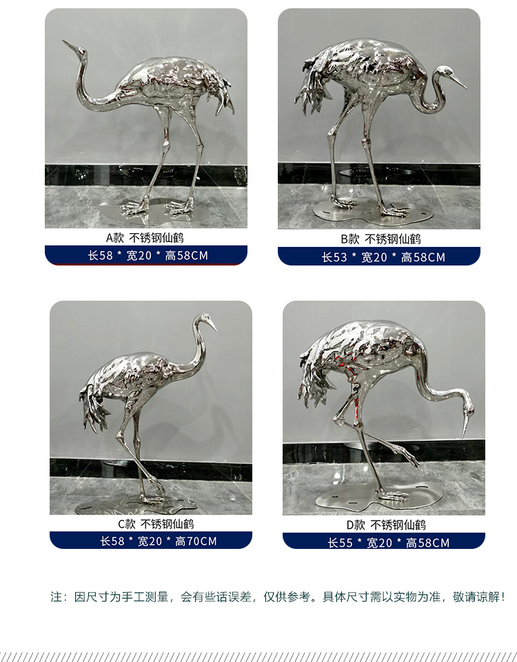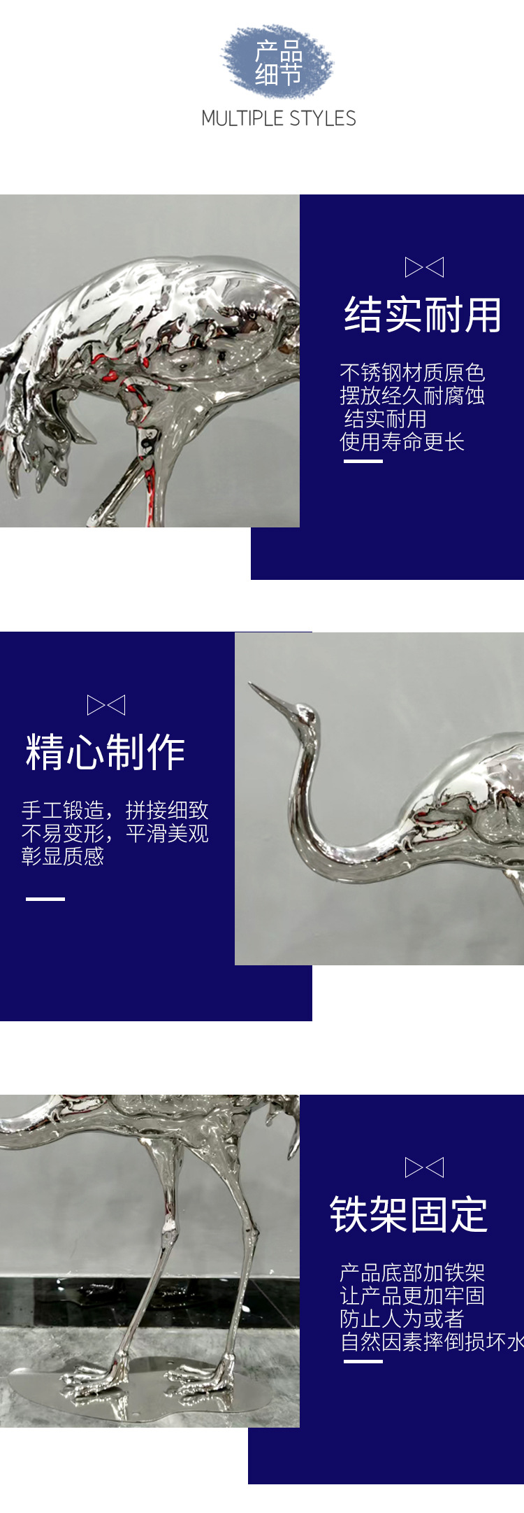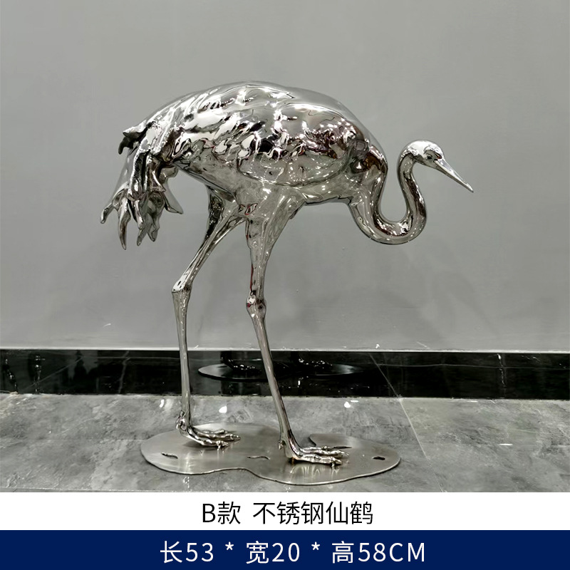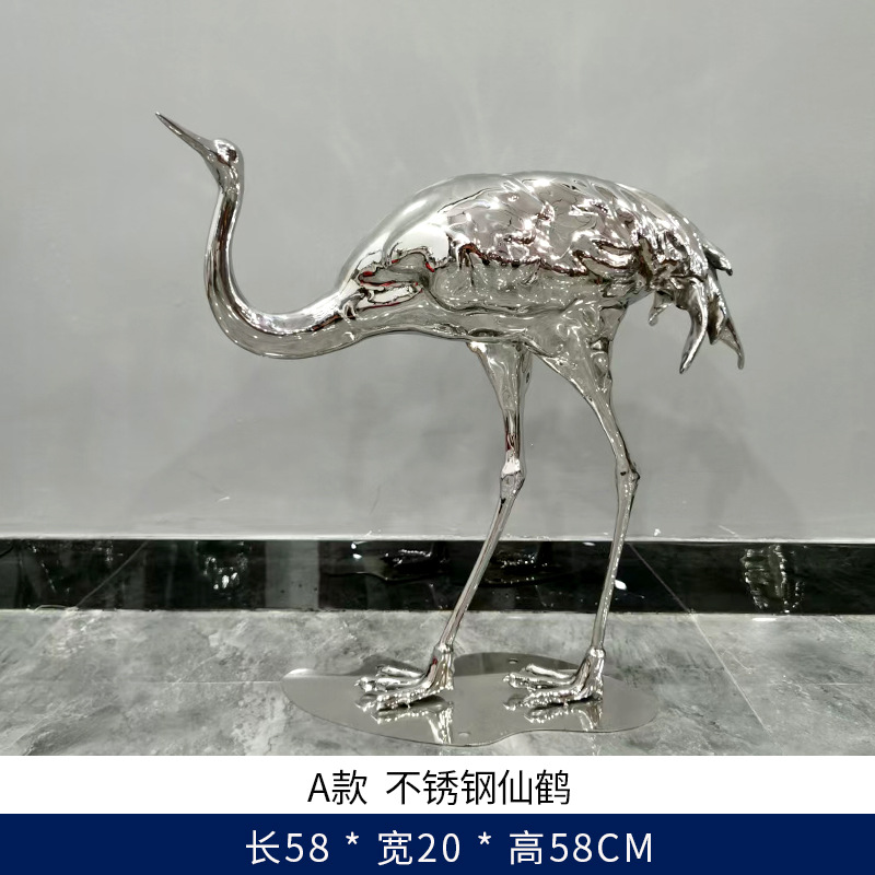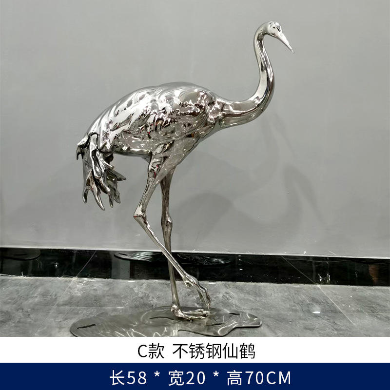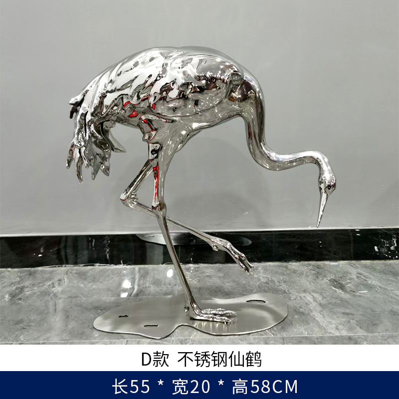 야외 스테인레스 스틸 금속 시뮬레이션 크레인 거울 조각 수영장 조경 호텔 판매 사무실 정원 장식 장식품