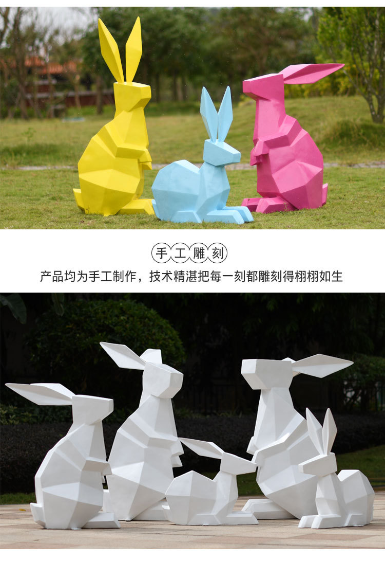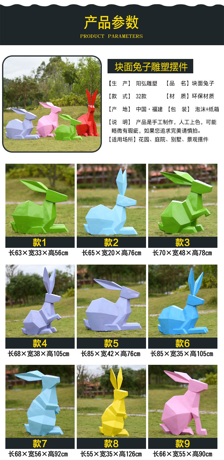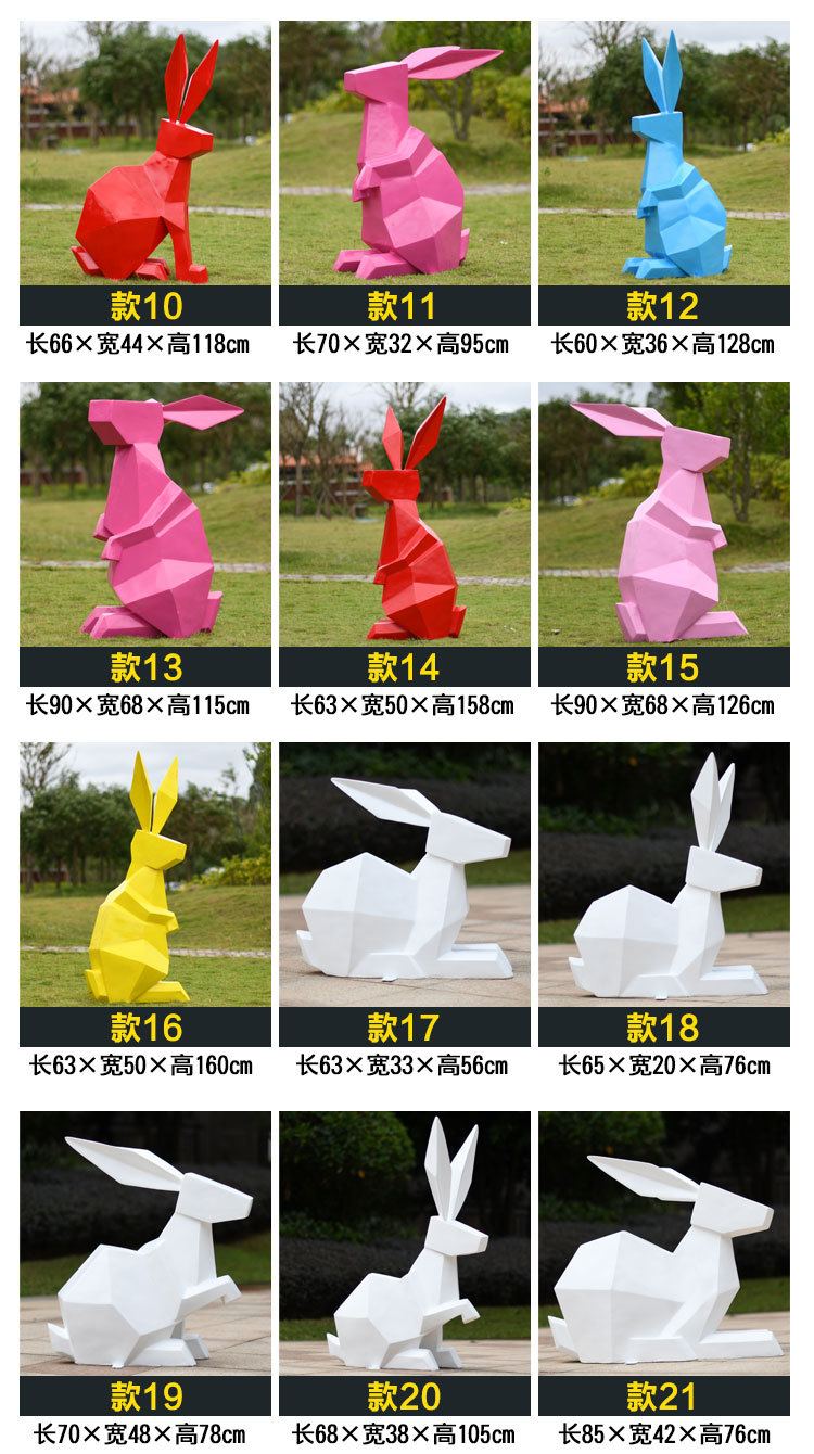 정원 기하학 토끼 조각 추상 블록 동물 유리 섬유 강화 플라스틱 정원 풍경 장식 쇼핑몰 장식품스토어 가기