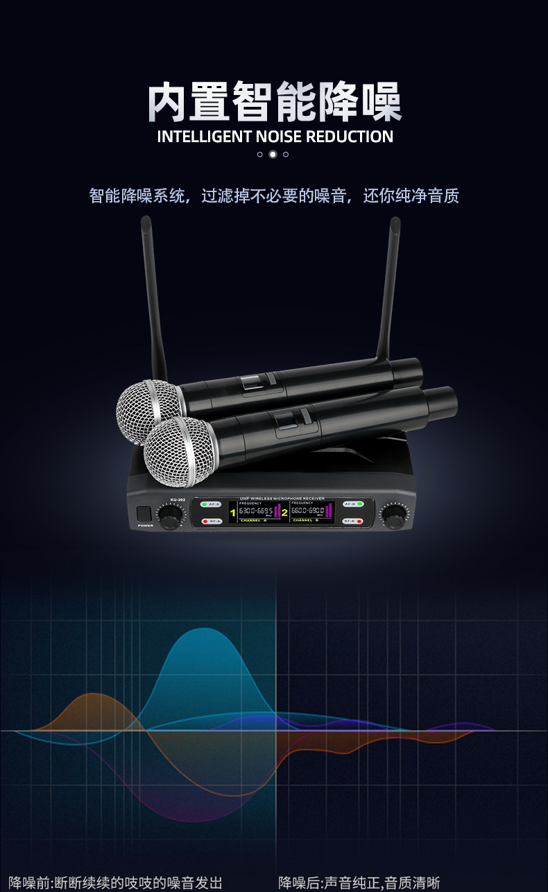 국경 무선 마이크 일대일 KTV 홈 K-노래 믹서 성능 전문 무선 동적 마이크