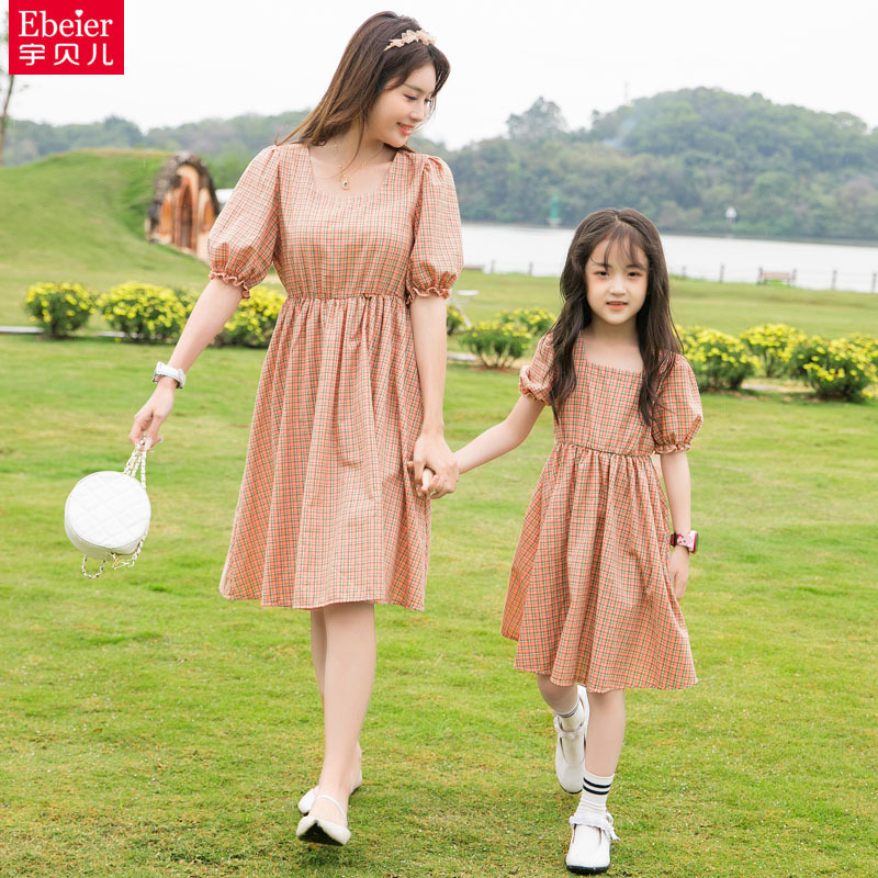 부모-자식 복장 여름 원피스 2023 새로운 패션 가족 3 4 외국 스타일 엄마와 딸 거즈 스커트 가족 엄마와 아이 세트스토어 가기