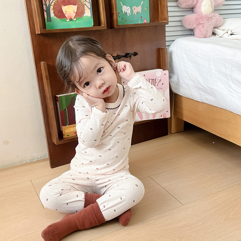 소년과 소녀를 세트 어린이 면 얇은 속옷 아기의 가을 옷 긴 바지 소년의 뼈없는 가정 옷 슬림핏 잠옷스토어 가기