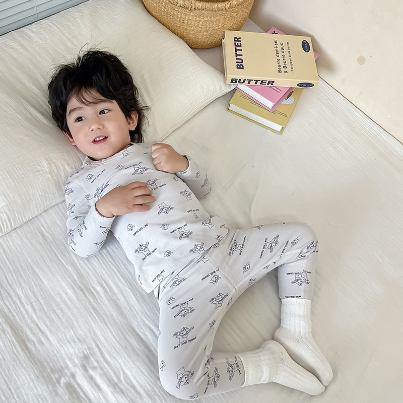 소년과 소녀를 세트 어린이 면 얇은 속옷 아기의 가을 옷 긴 바지 소년의 뼈없는 가정 옷 슬림핏 잠옷