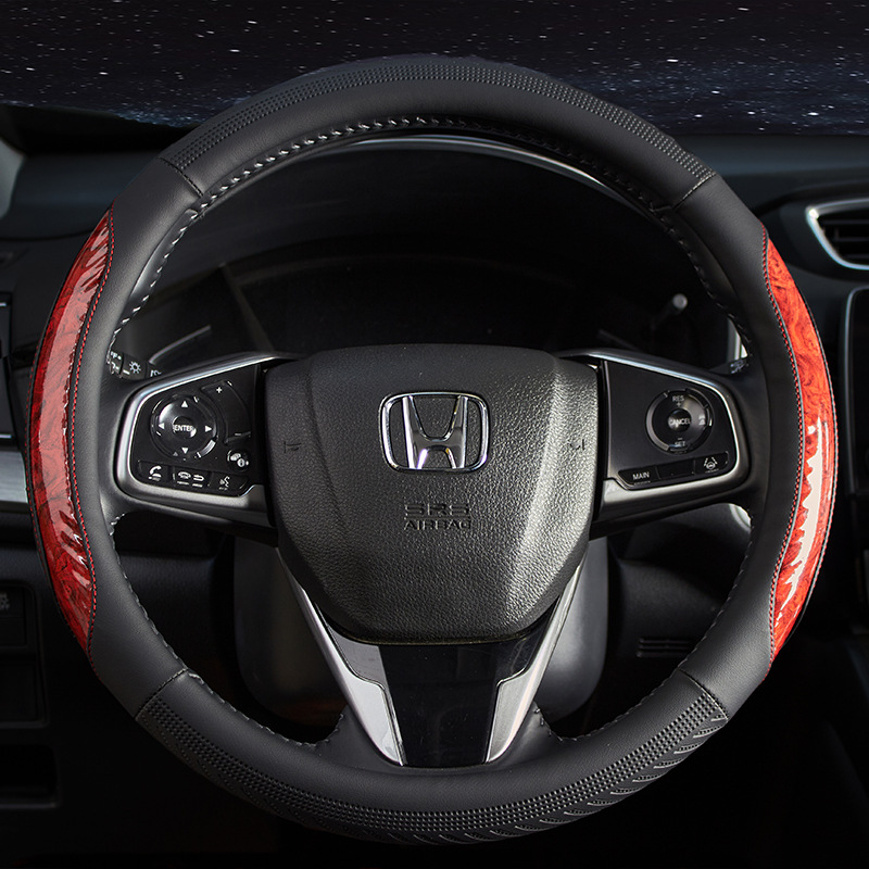 자동차 핸들 커버 사계절 만능 복숭아 나무 바느질 탄소 섬유 자동차 핸들 세트 자동차 용품 도매스토어 가기