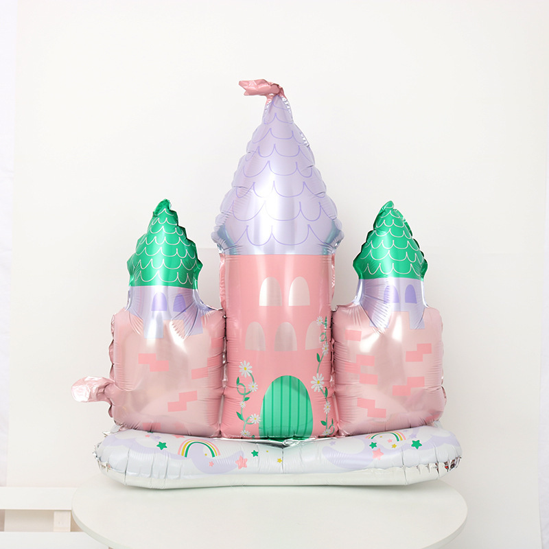 3D 서 드림 캐슬 알루미늄 필름 풍선 핑크 보라색 테마 공주 생일 파티 장식 사진 장식