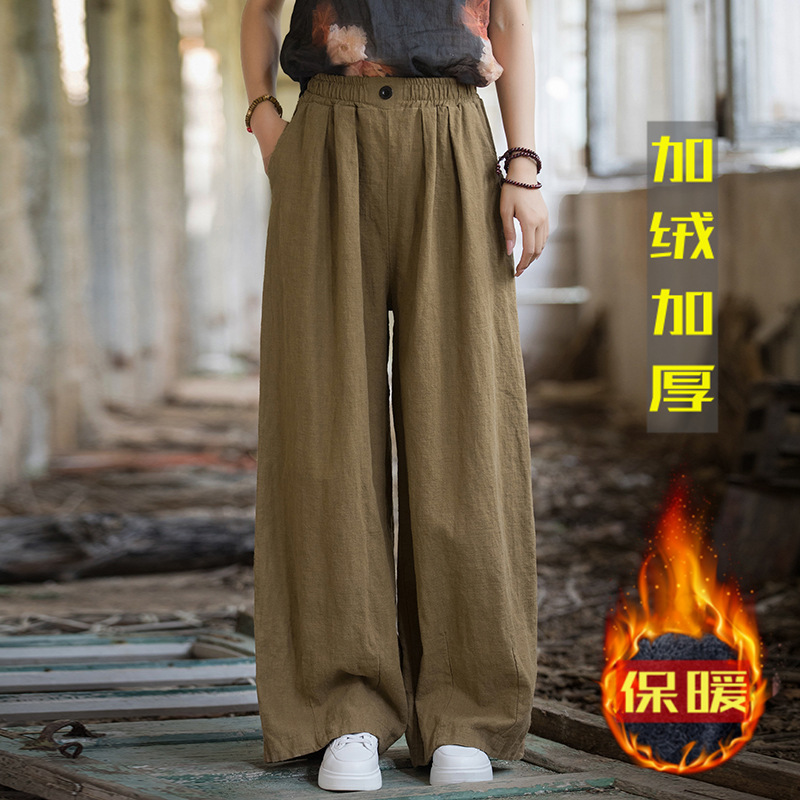25 겨울용 면마 여성복 신상품, 모시면 샌드워싱 여성용 루즈핏 캐주얼 팬츠, 난바이슈팡 오리지널 스트레이트 롱 팬츠스토어 가기