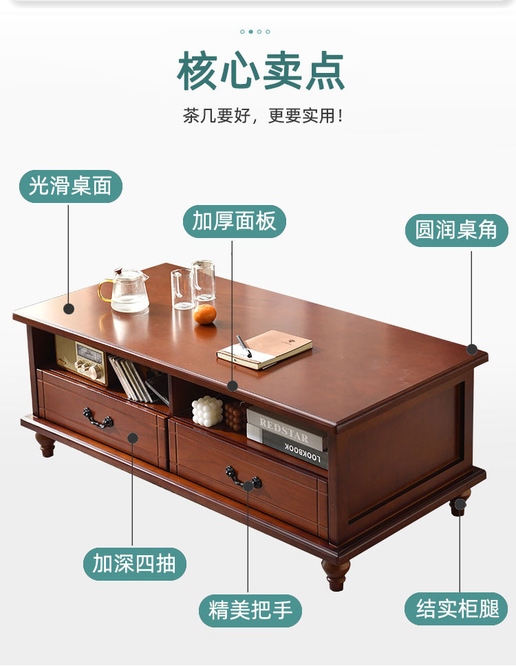 단단한 나무 커피 테이블 테이블 거실 작은 아파트 테이블 조명 럭셔리 현대 간단한 다기능 커피 테이블 식탁 이중 사용스토어 가기