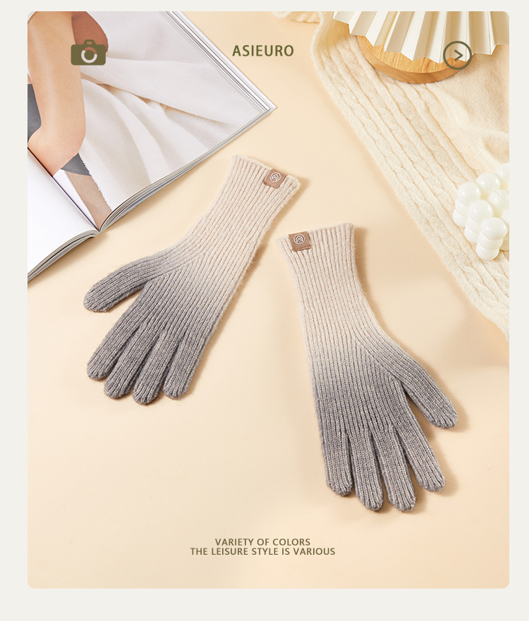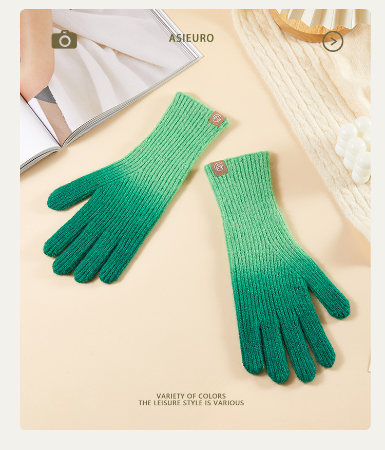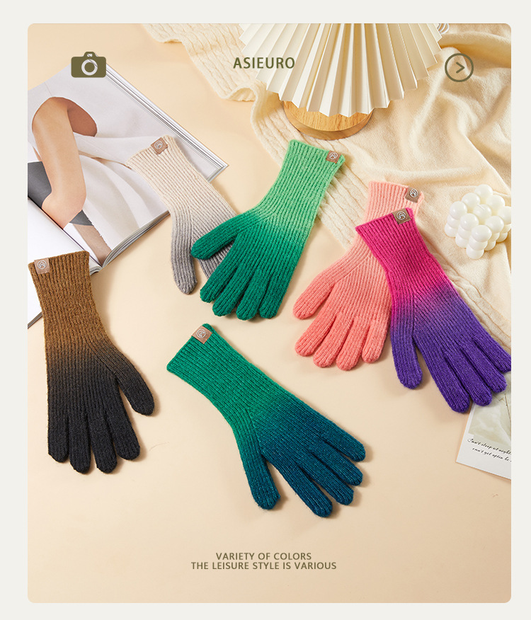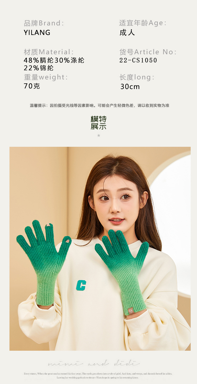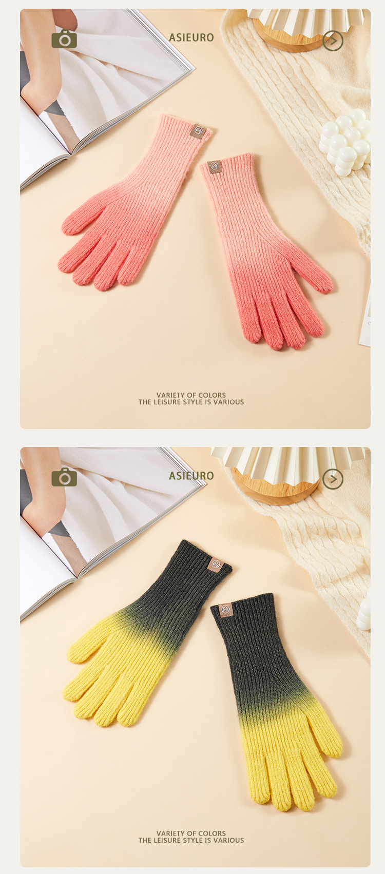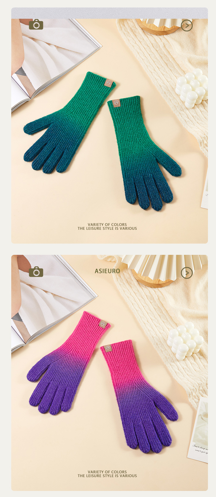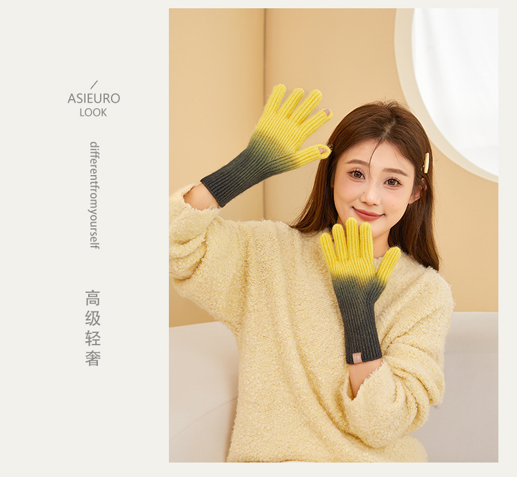 새로운 숙녀 한국 기모 따뜻한 니트 장갑 도매 터치 스크린 그라디언트 긴 장갑의 한국어 버전스토어 가기