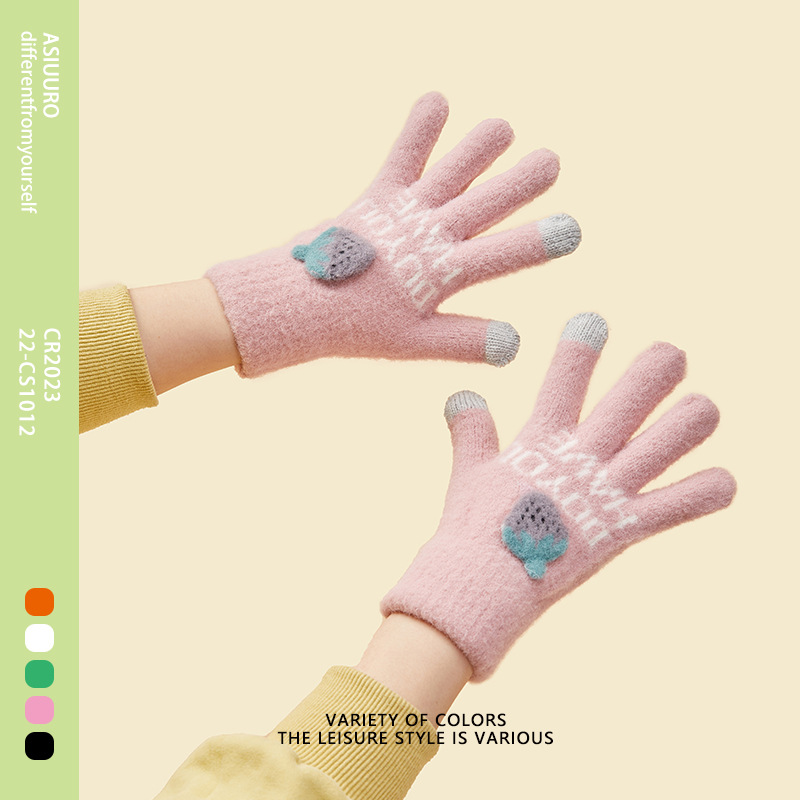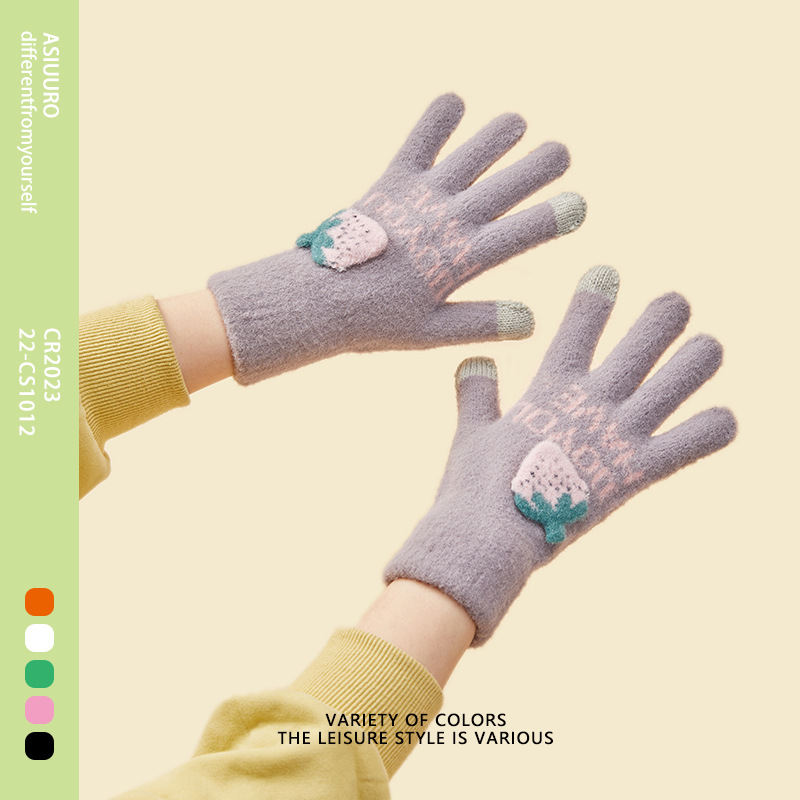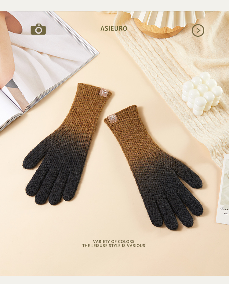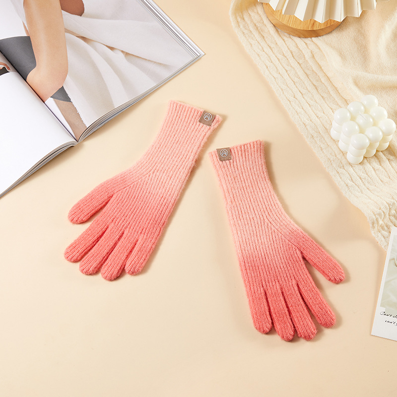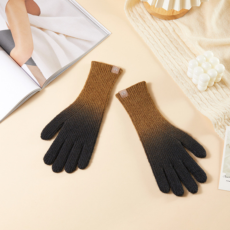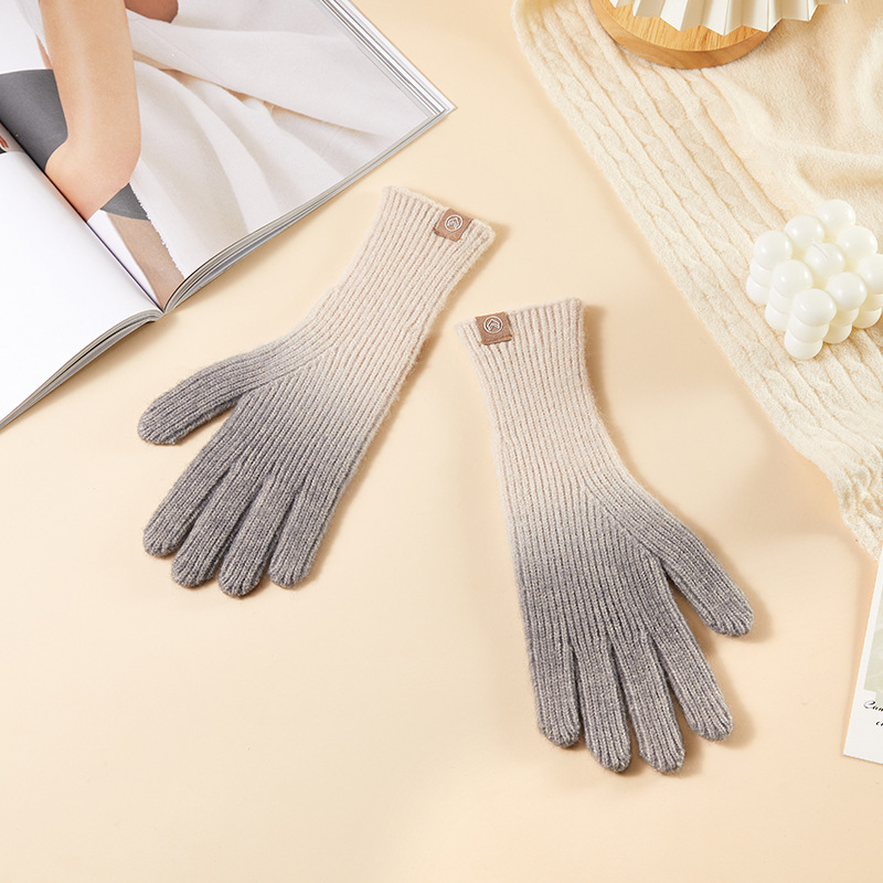 새로운 숙녀 한국 기모 따뜻한 니트 장갑 도매 터치 스크린 그라디언트 긴 장갑의 한국어 버전