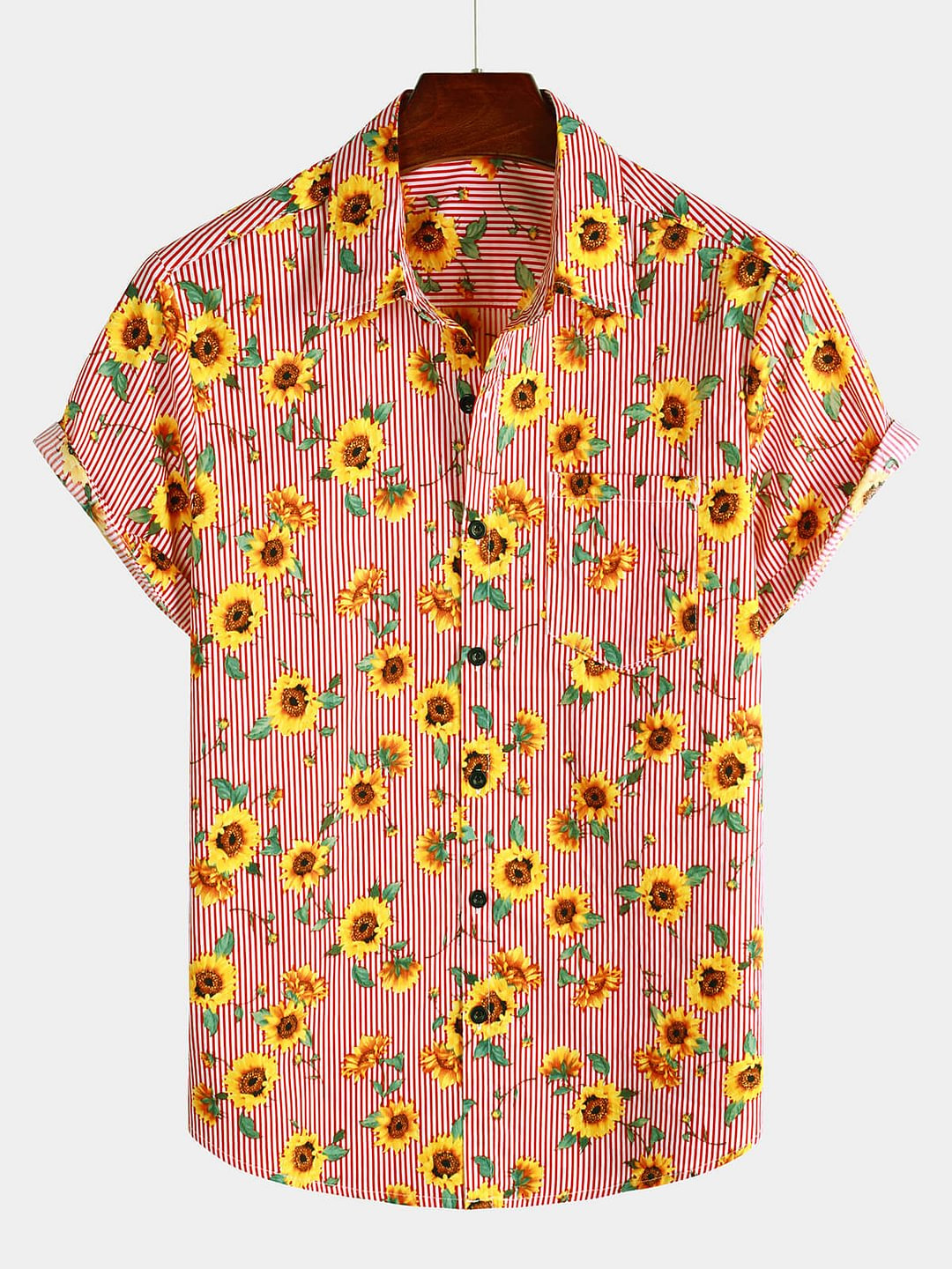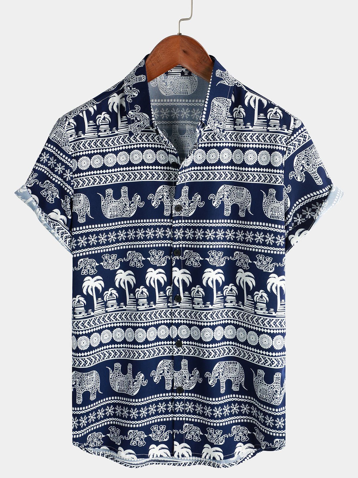 크로스 보더 새로운 남성 유행 여름 캐주얼 카디건 탑 디지털 프린트 하와이안 반팔 셔츠 남성