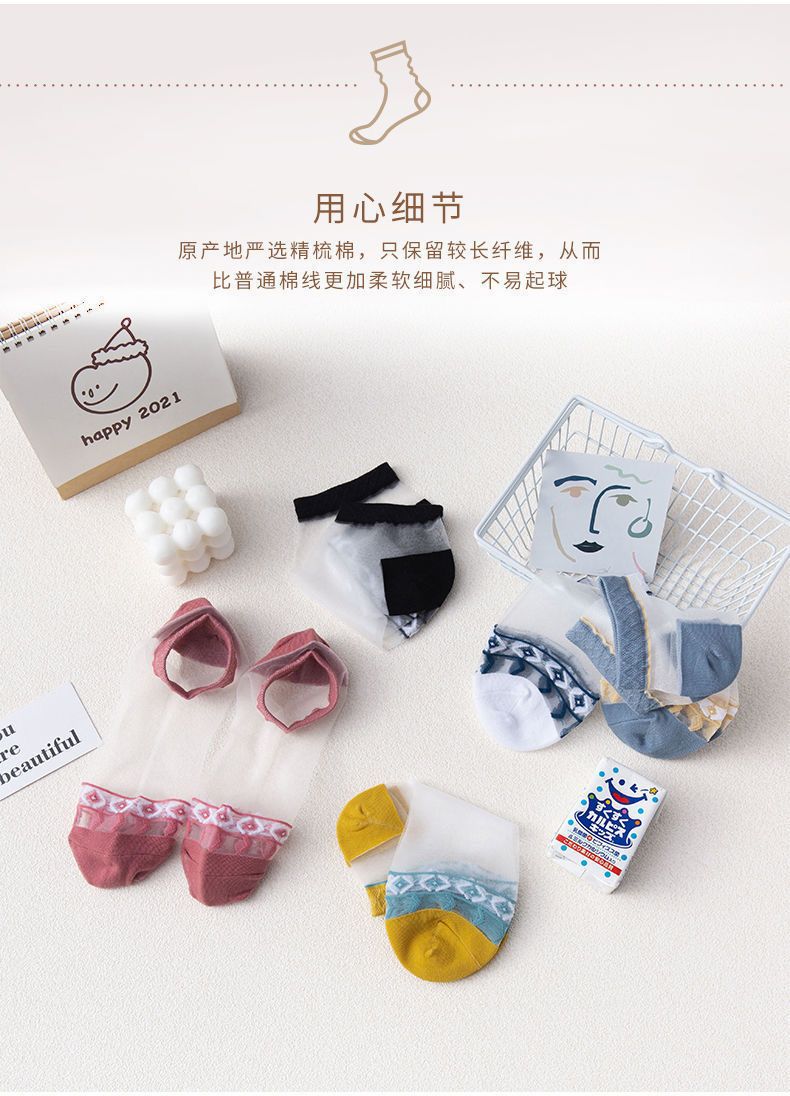 크리스탈 유리 카드 스타킹 어린이 아이스 실크 여름 짧은 튜브 보트 양말 면 바닥 안티 후크 실크 땀 방지 얇은 얕은 입 양말스토어 가기