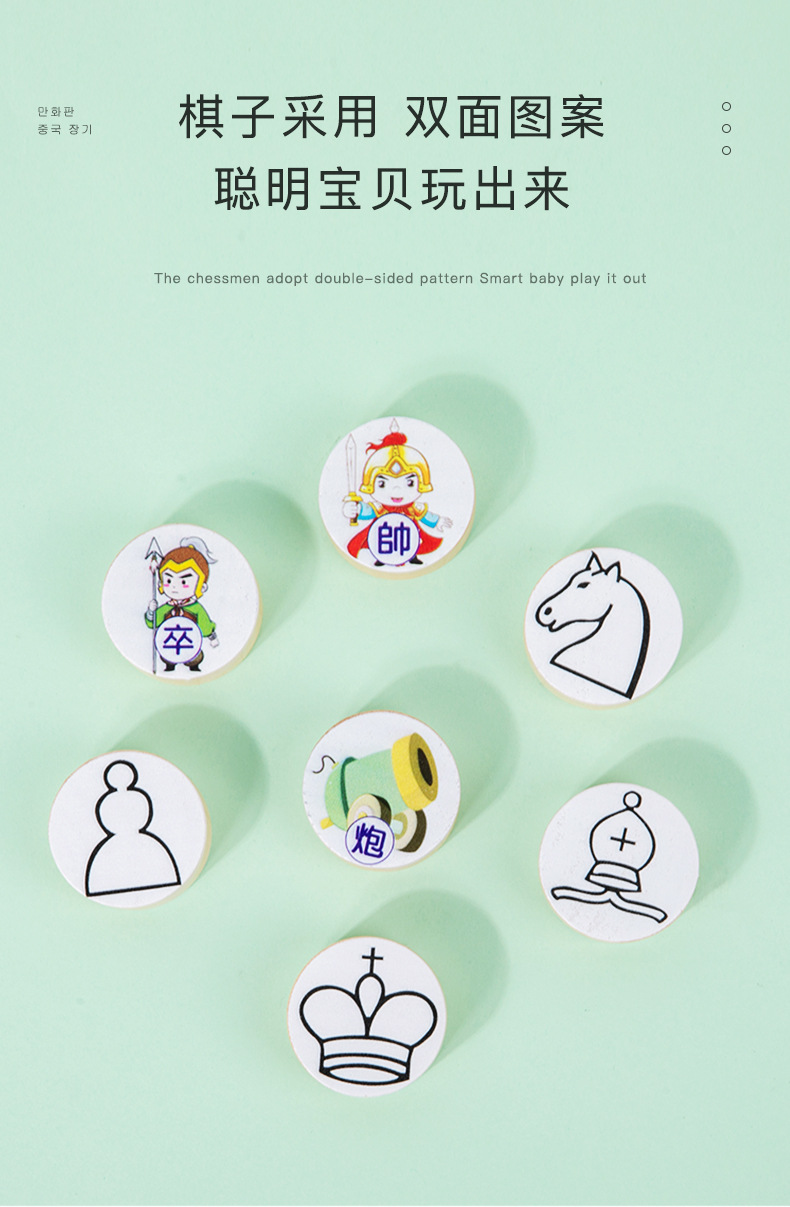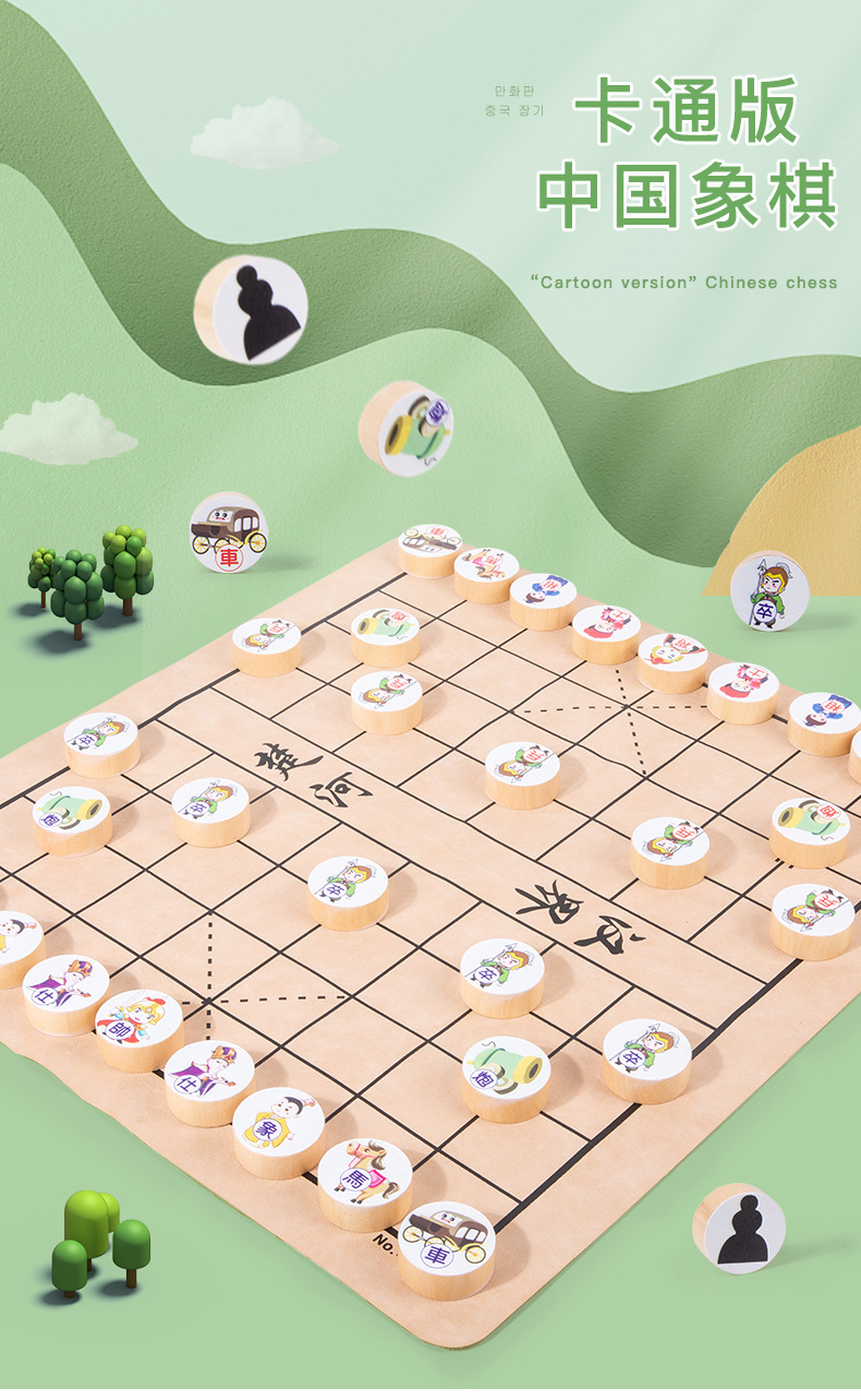 어린이 교육 데스크탑 캐주얼 게임 체스 나무 체스 장난감 크고 작은 만화 보드 중국 체스 게임스토어 가기