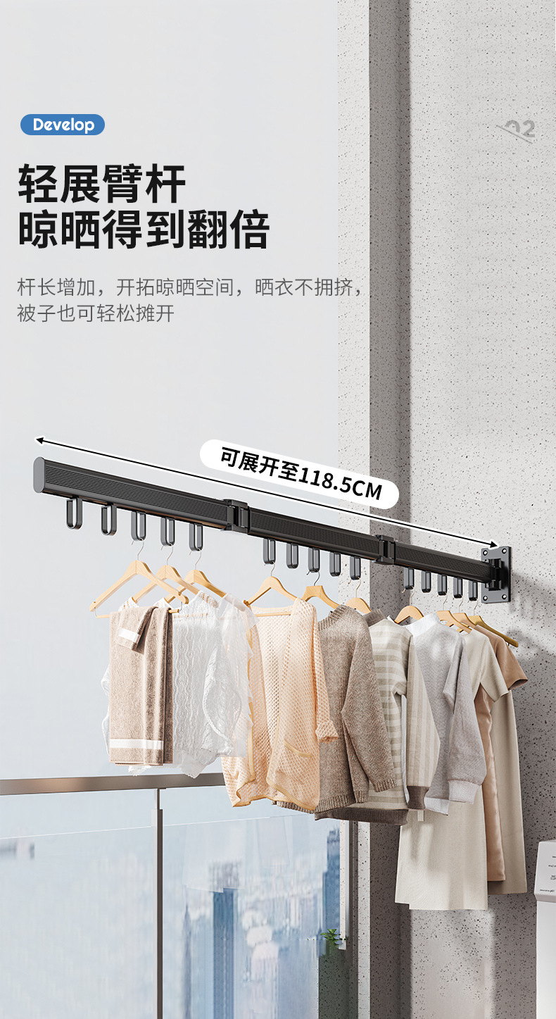 접이식 옷 랙 벽걸이 형 실내 창 밖 부동 가정용 발코니 보이지 않는 옷 바 망원경 건조 이불 유물