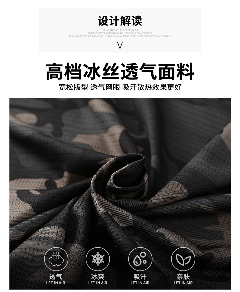 여름 위장 반팔 메쉬 초박형 아이스 실크 통기성 속건 플러스 사이즈 느슨한 탄성 남성과 여성의 캐주얼 편안한 소프트