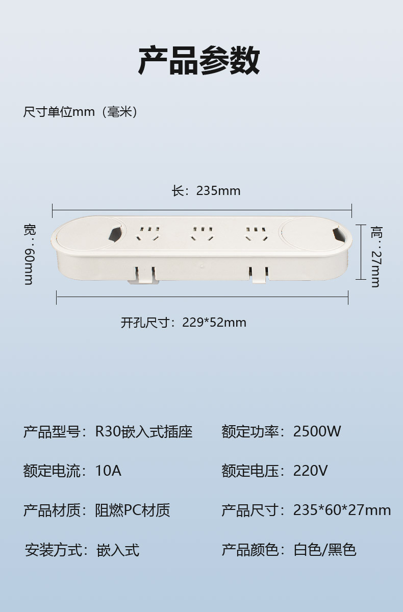 타원형 임베디드 전원 코드 상자 ABS 플라스틱 컴퓨터 책상 소켓 와이어 박스 와이어 마무리 상자 스레딩 상자