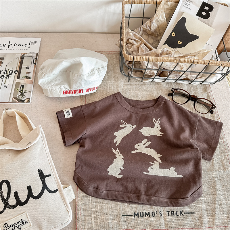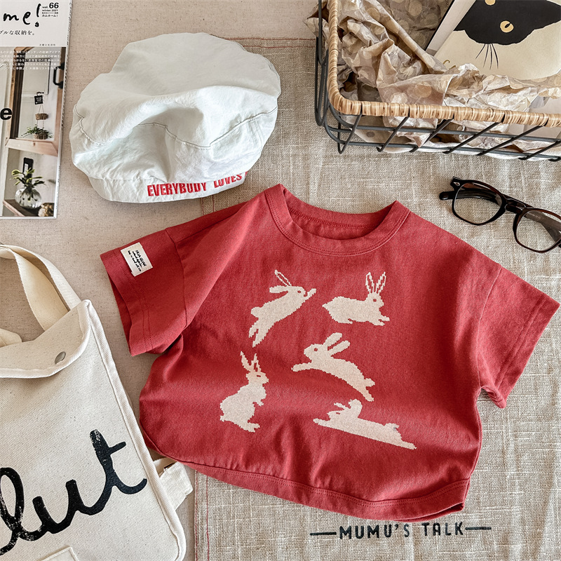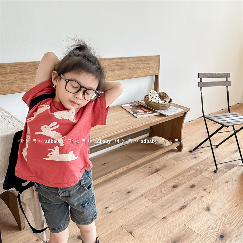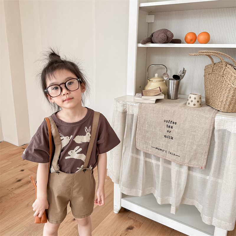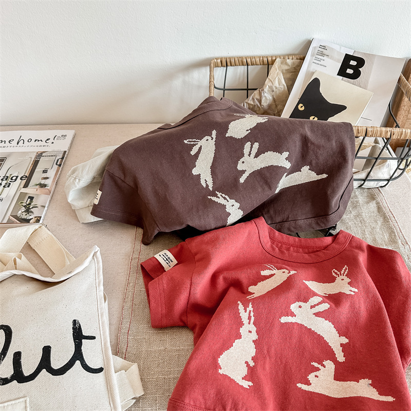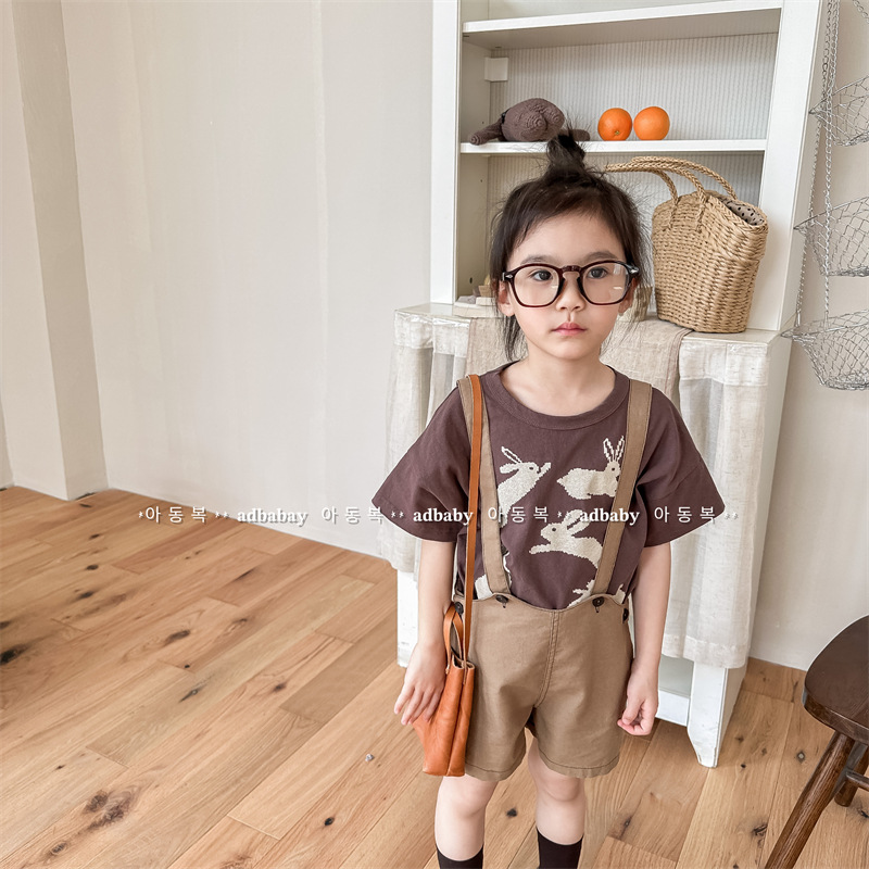 2025 아동 의류 여름 어린이 한국어 반팔 반응성 인쇄 티셔츠 소녀 소년 바닥 셔츠 123288