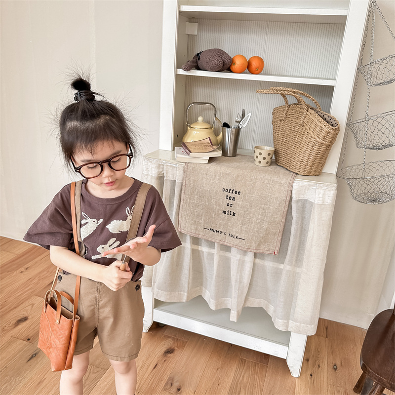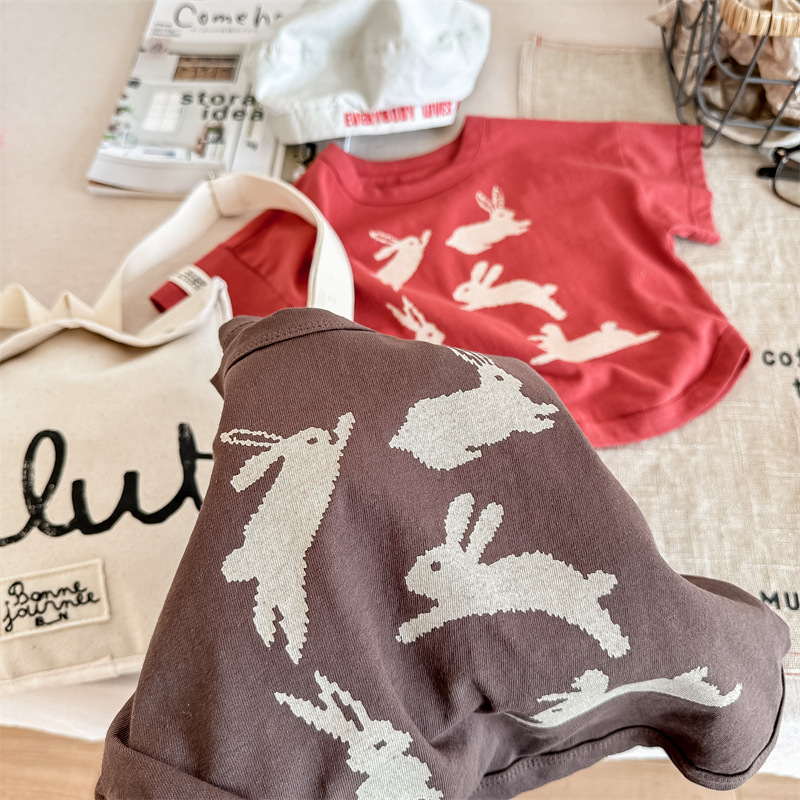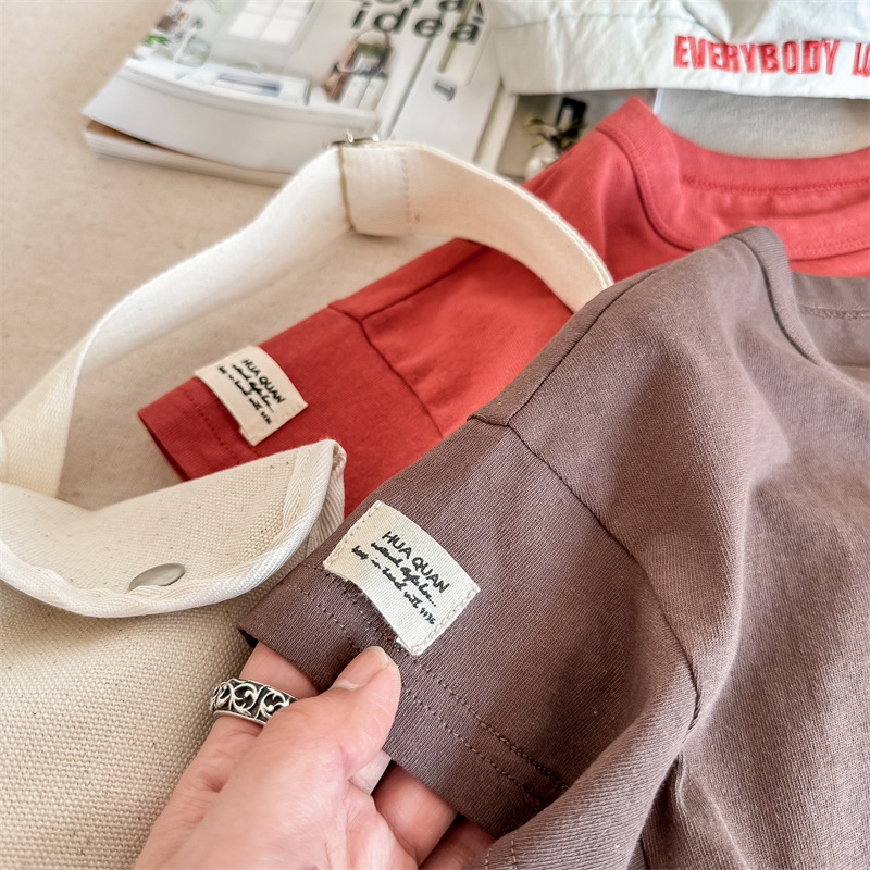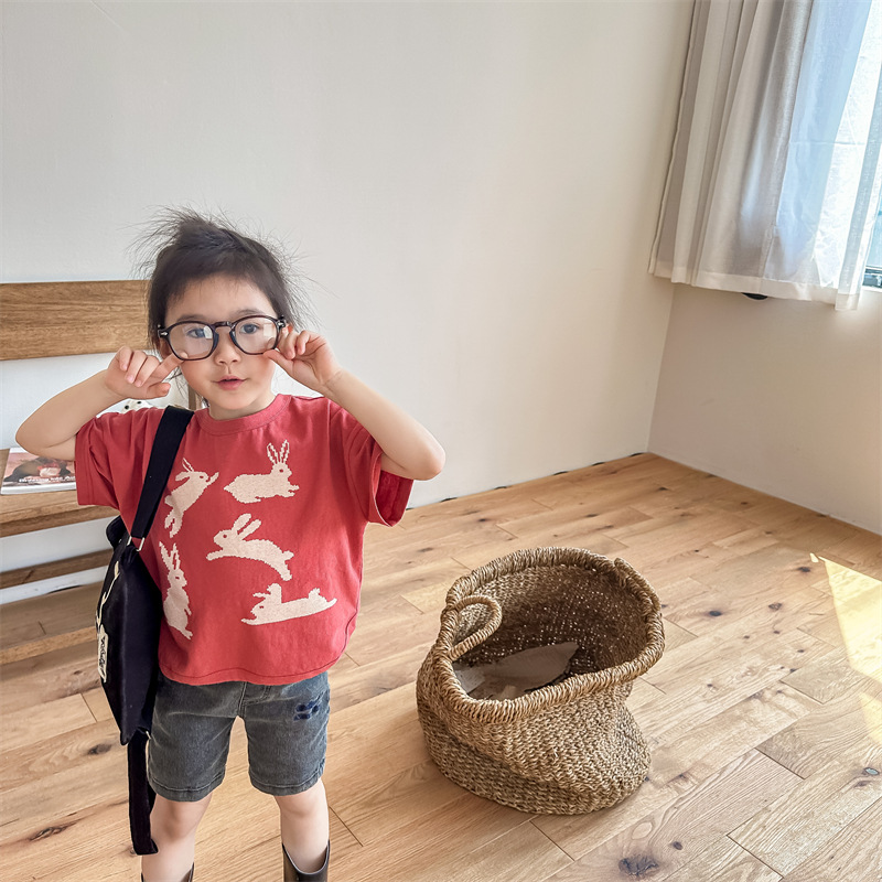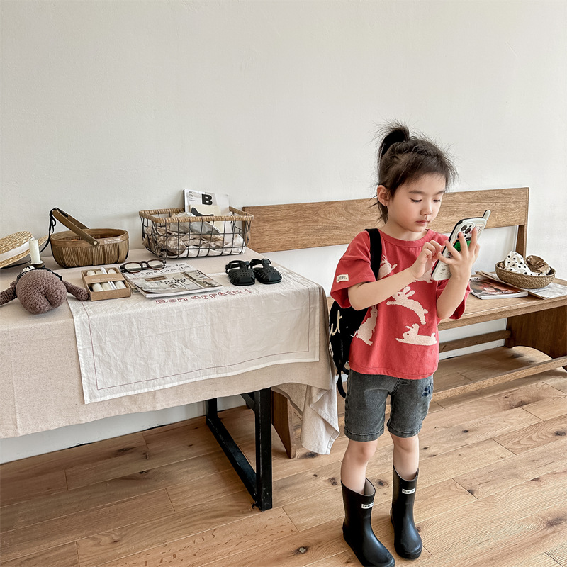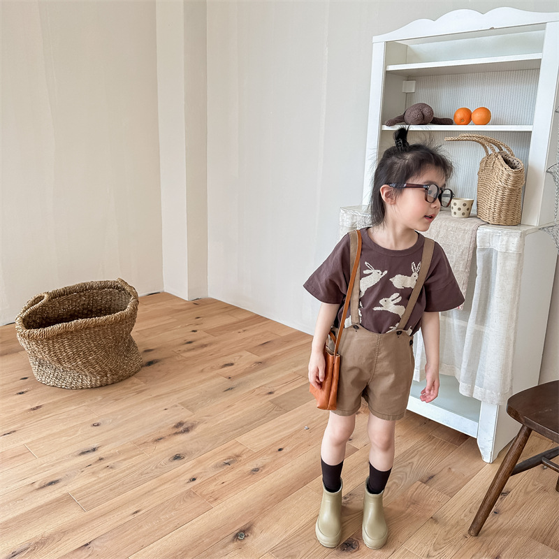 2025 아동 의류 여름 어린이 한국어 반팔 반응성 인쇄 티셔츠 소녀 소년 바닥 셔츠 123288