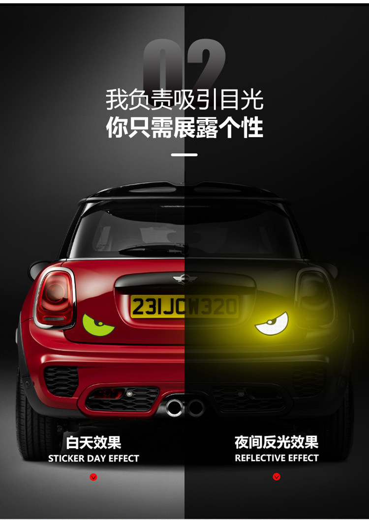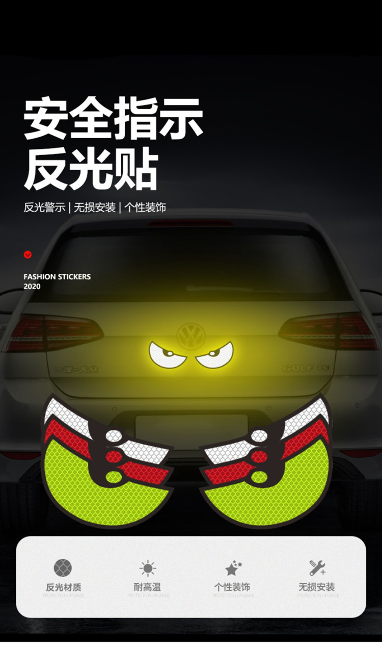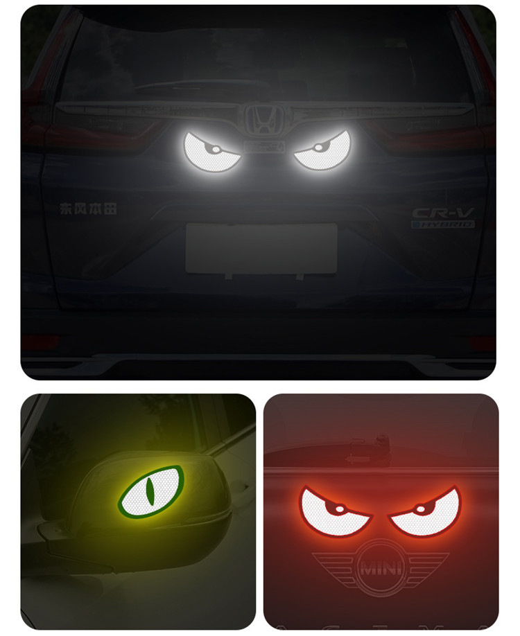 작은 악마 괴물 눈 반사 자동차 스티커 장식 자동차 전기 자동차 빛나는 밤 하이라이트 다이아몬드 클래스 자동차 스티커스토어 가기