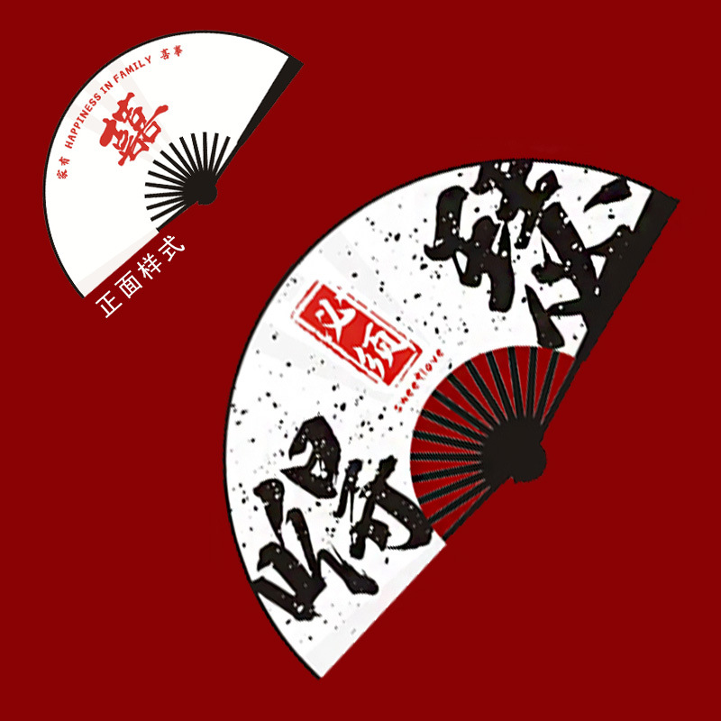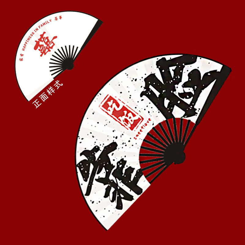 신랑의 최고의 남자 형제의 그룹 팬이 친척을 받고 친척을 맞이합니다. 게임 웨딩 사진 소품 양면 국가 패션 접이식 팬 종이 팬스토어 가기
