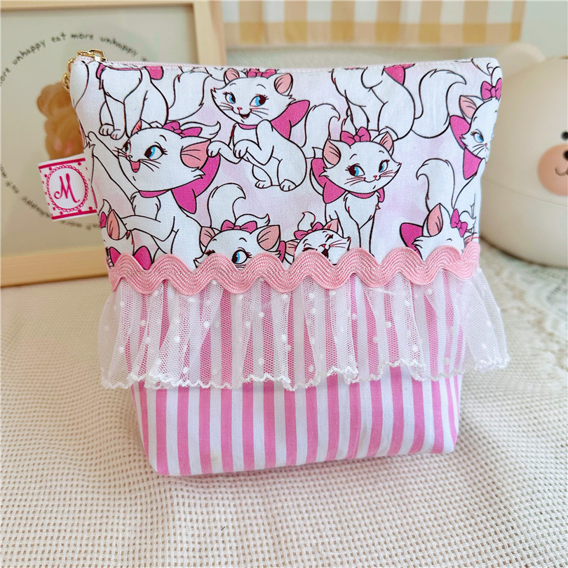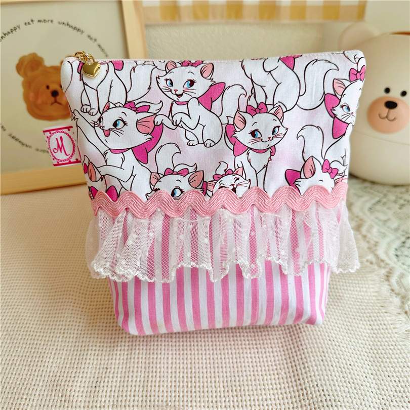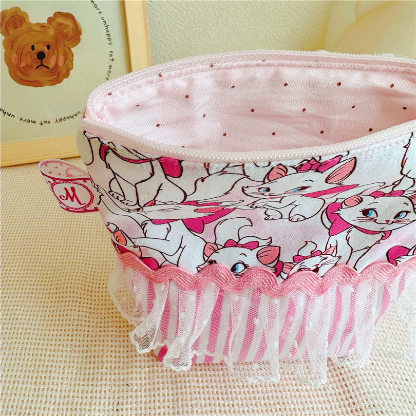 디지털 인쇄 코튼 레이스 만화 메리 고양이 달콤한 분말 투명 퀵샌드 화장품 가방 제조 업체 도매