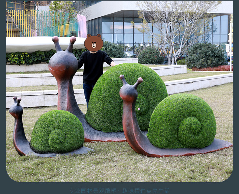 녹색 달팽이 대형 장식품 야외 FRP 동물 조각 정원 풍경 정원 안뜰 시뮬레이션 녹색 식물 스케치