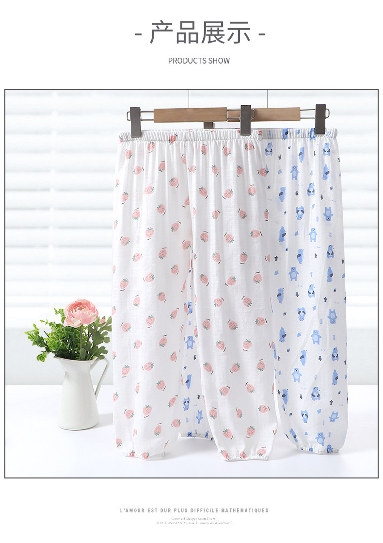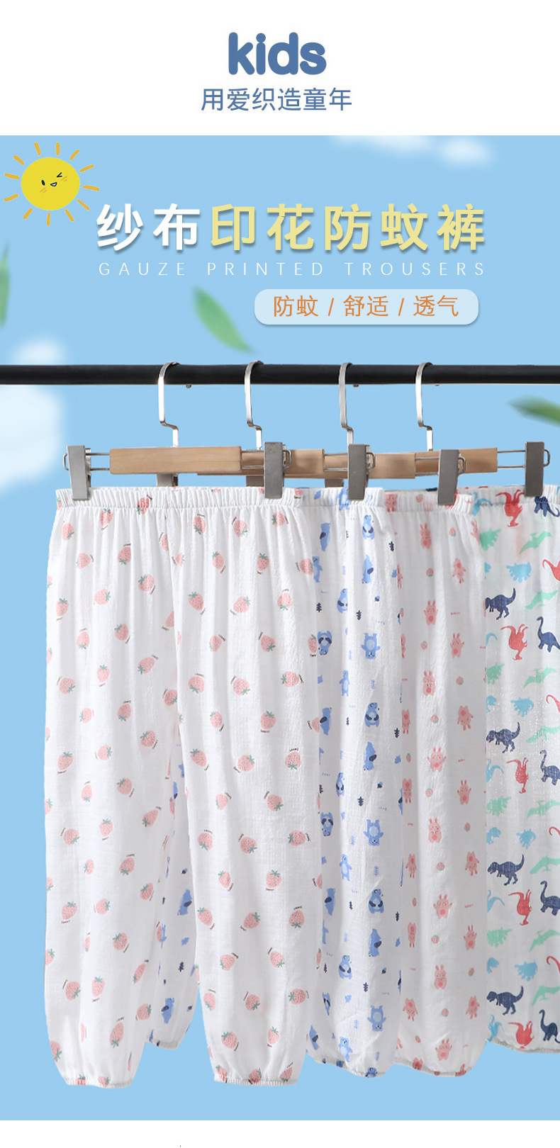 2023 년 여름 새 어린이 거즈 인쇄 안티 모기 바지 어린이 바지 여름 얇은 재고스토어 가기