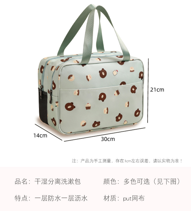 화장품 가방, 습식 및 건식 분리 화장품 보관 가방, 여행용 휴대용 대용량 핸드백, 수영 및 피트니스 세면도구 가방