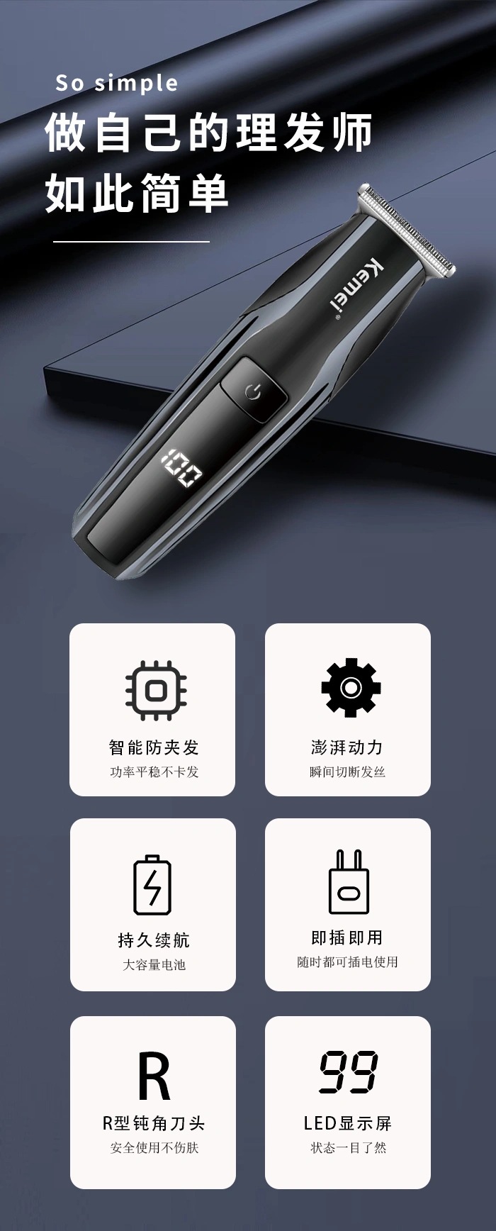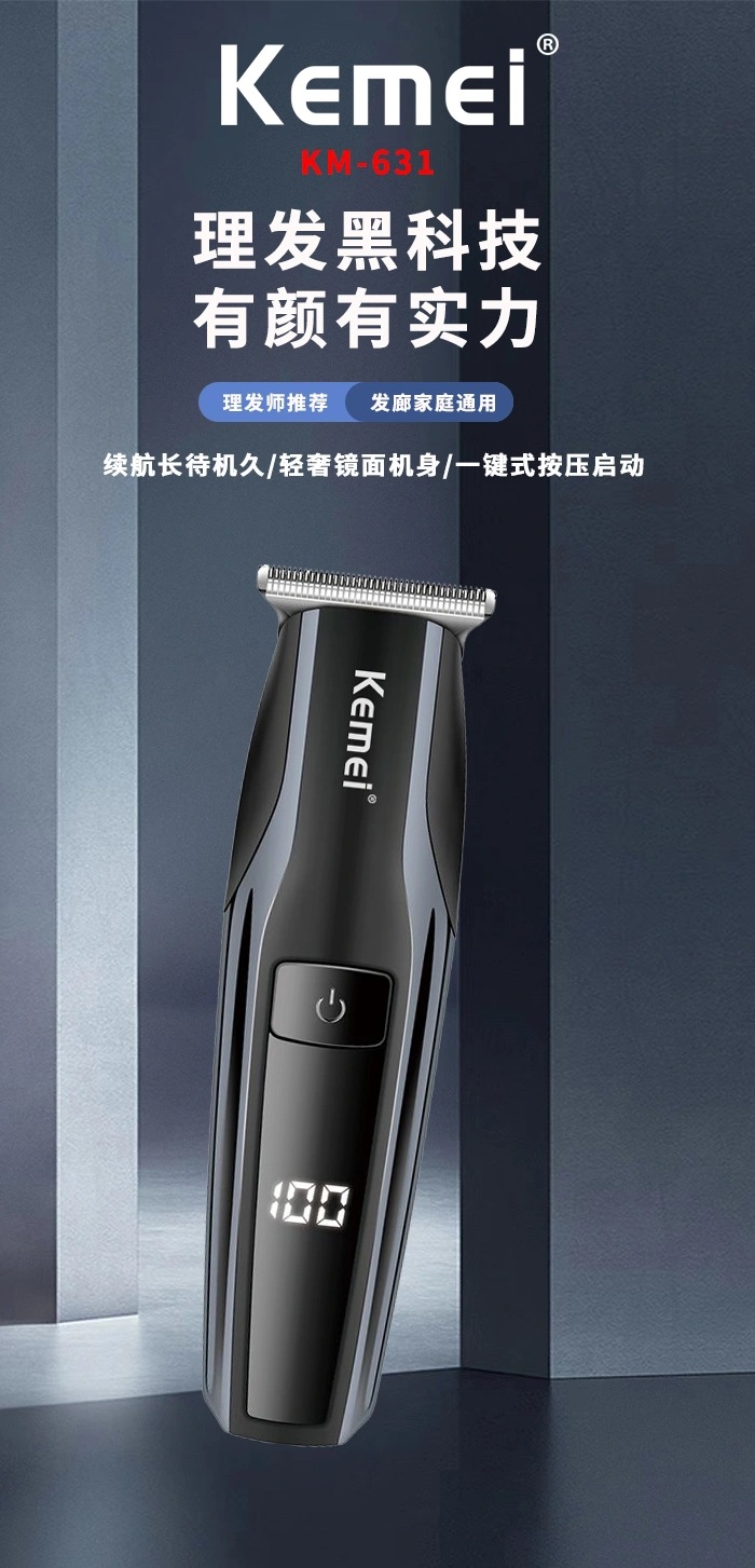 코미 헤어 클리퍼 KM-631 국경 새로운 아마존 LED LCD 디지털 헤어 클리퍼 미용실 전기 클리퍼스토어 가기