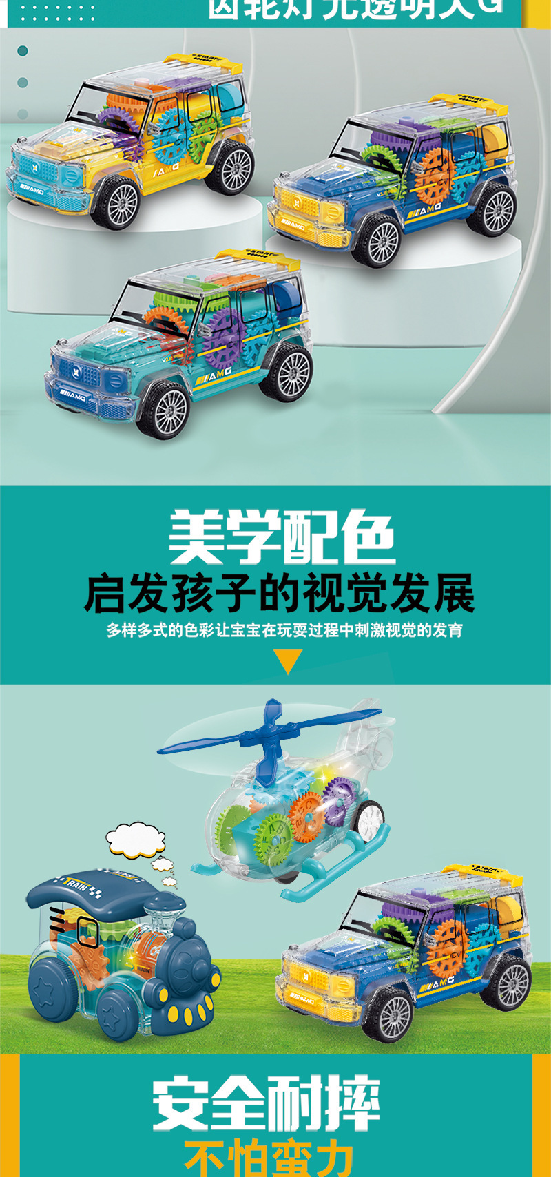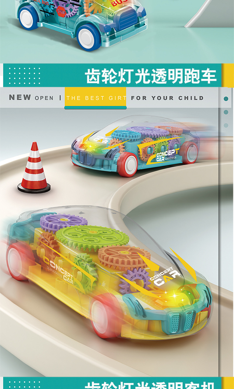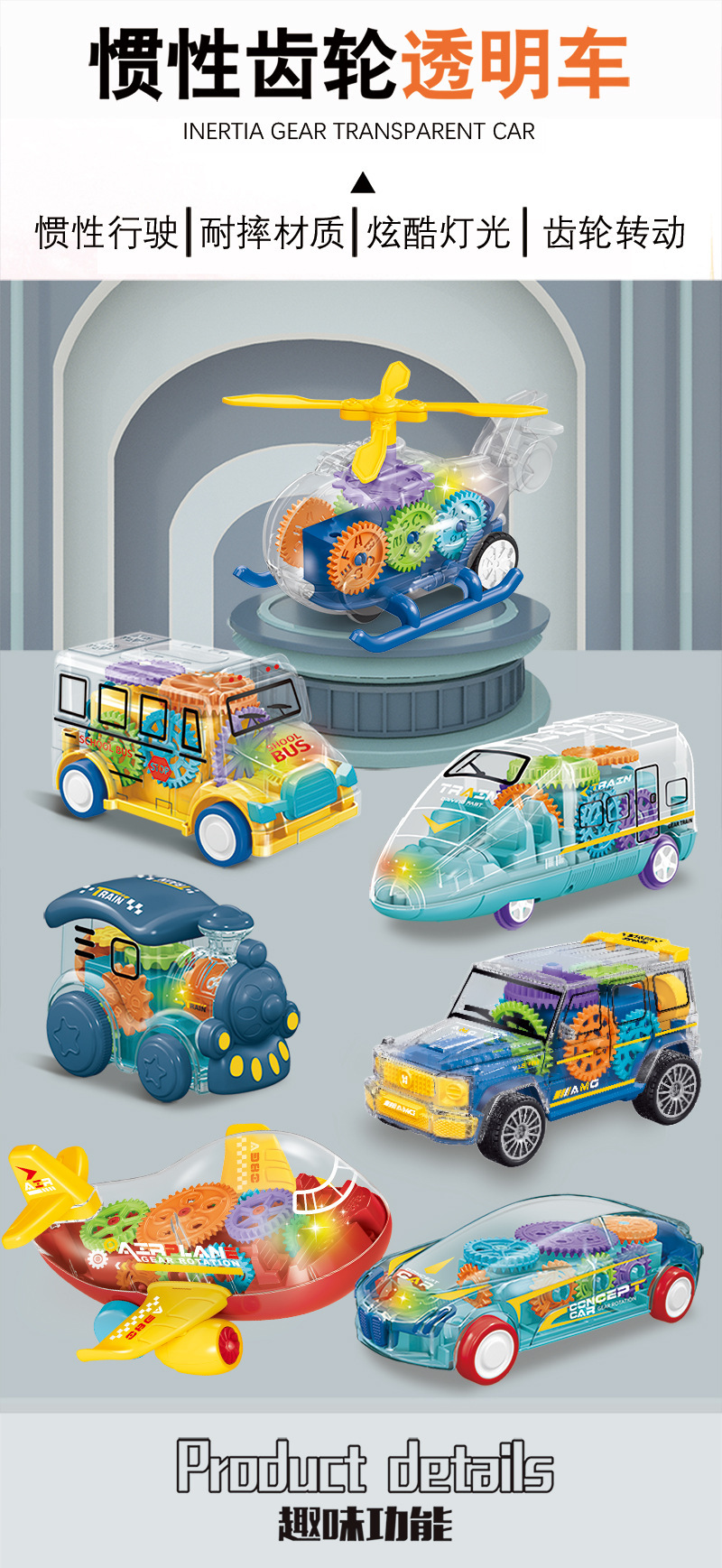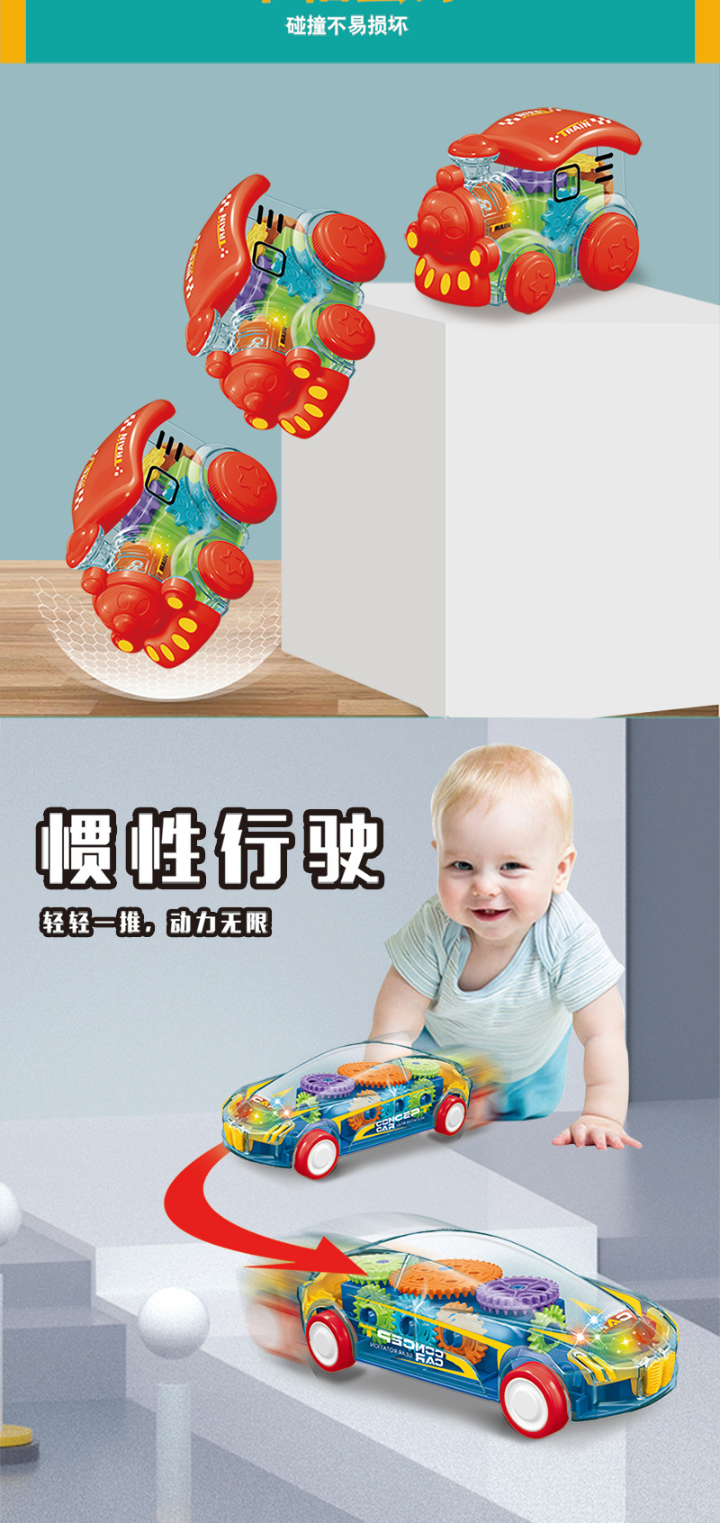어린이 자동차 장난감 관성 드롭 방지 투명 기어 라이트 장난감 자동차 모델 야간 시장 스톨 도매 선물스토어 가기