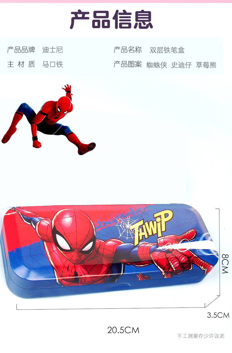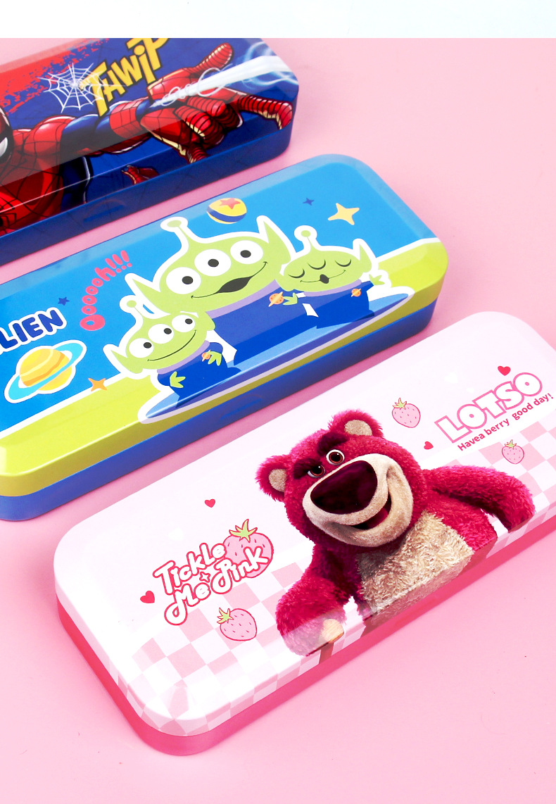 • 딸기 곰 귀여운 분말 더블 레이어 철 펜 상자