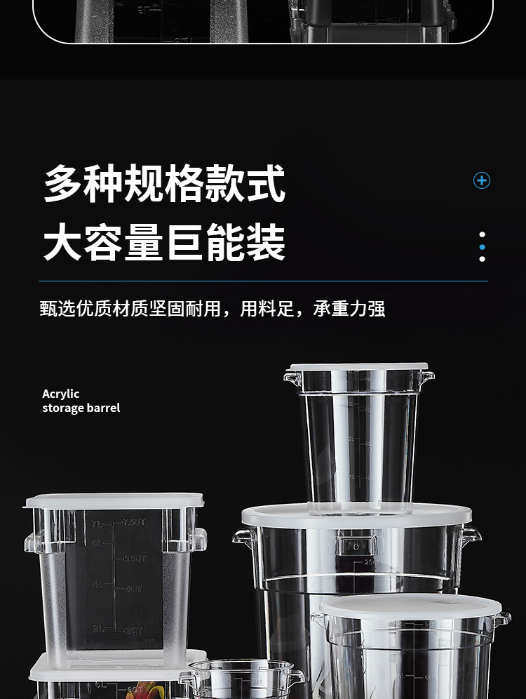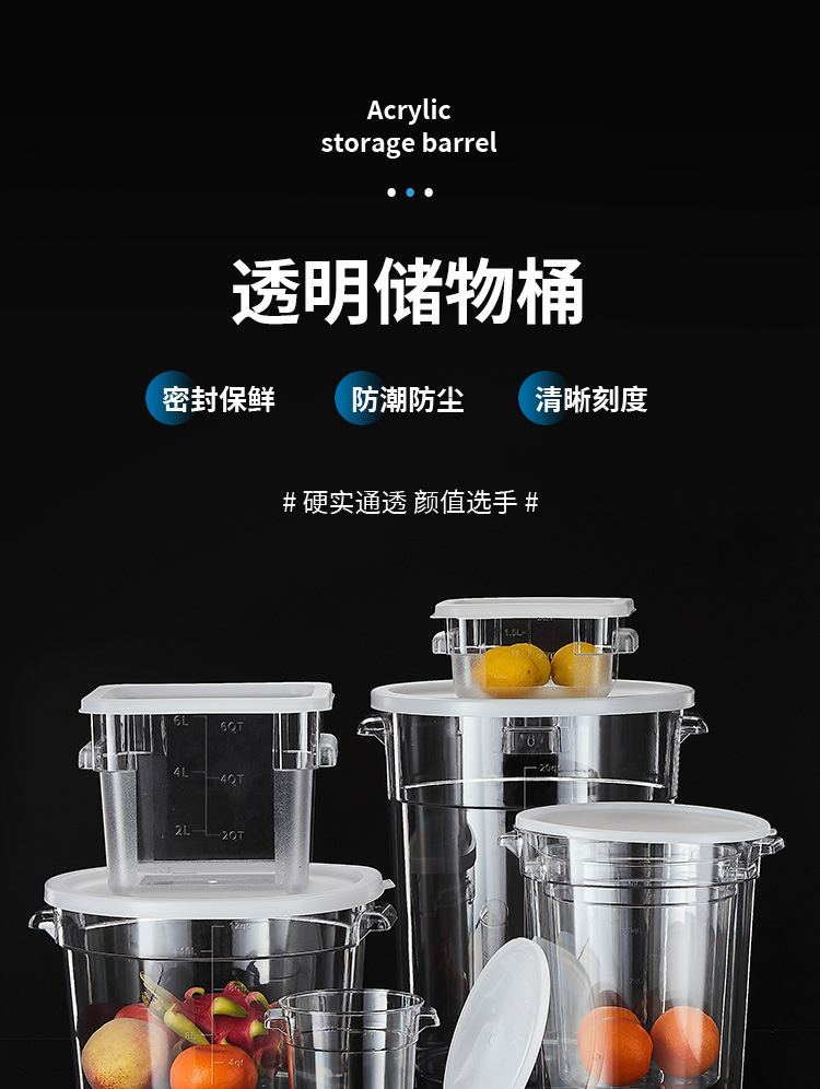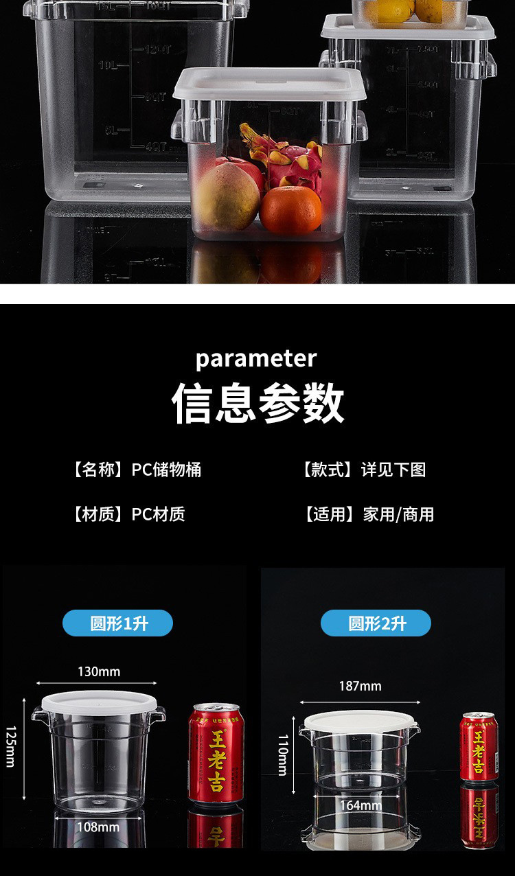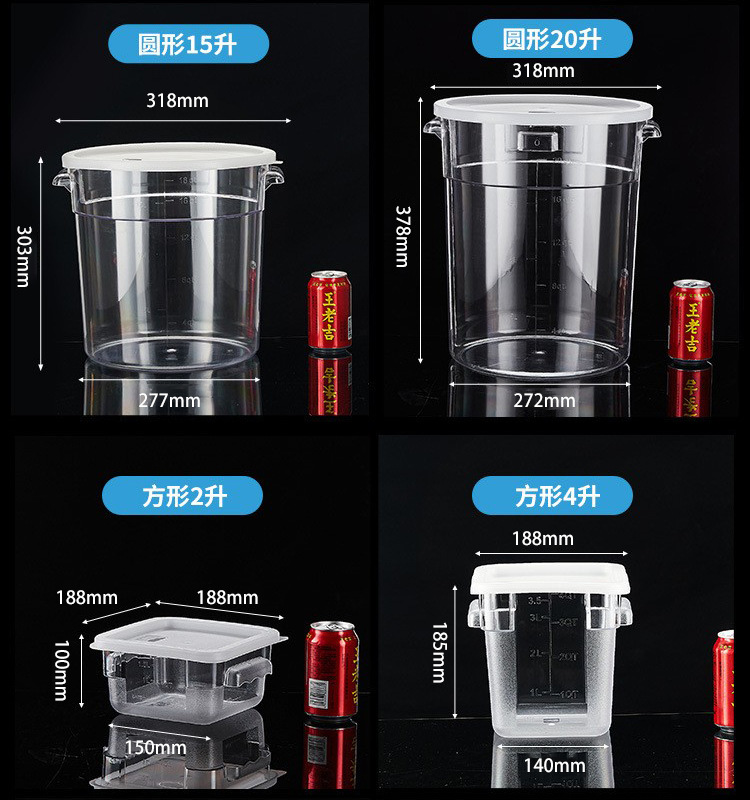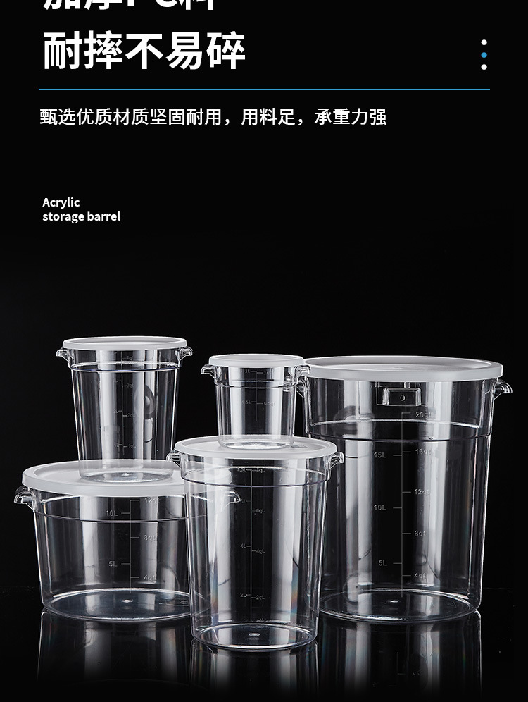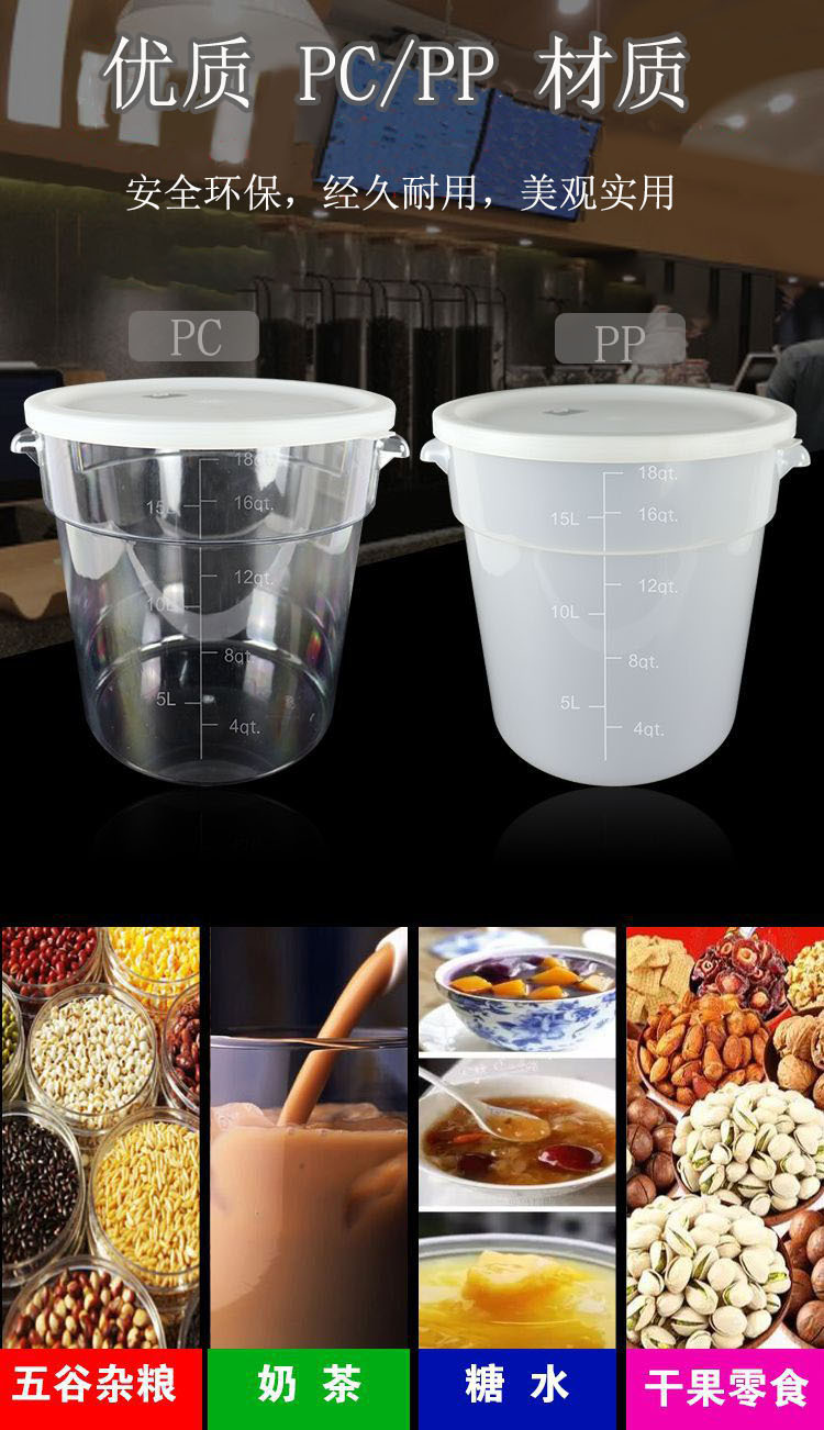 원형 저장통 PC 플라스틱 식품 등급 곡물 보관 밀가루 쌀통 다양한 용량 및 규격 보관통