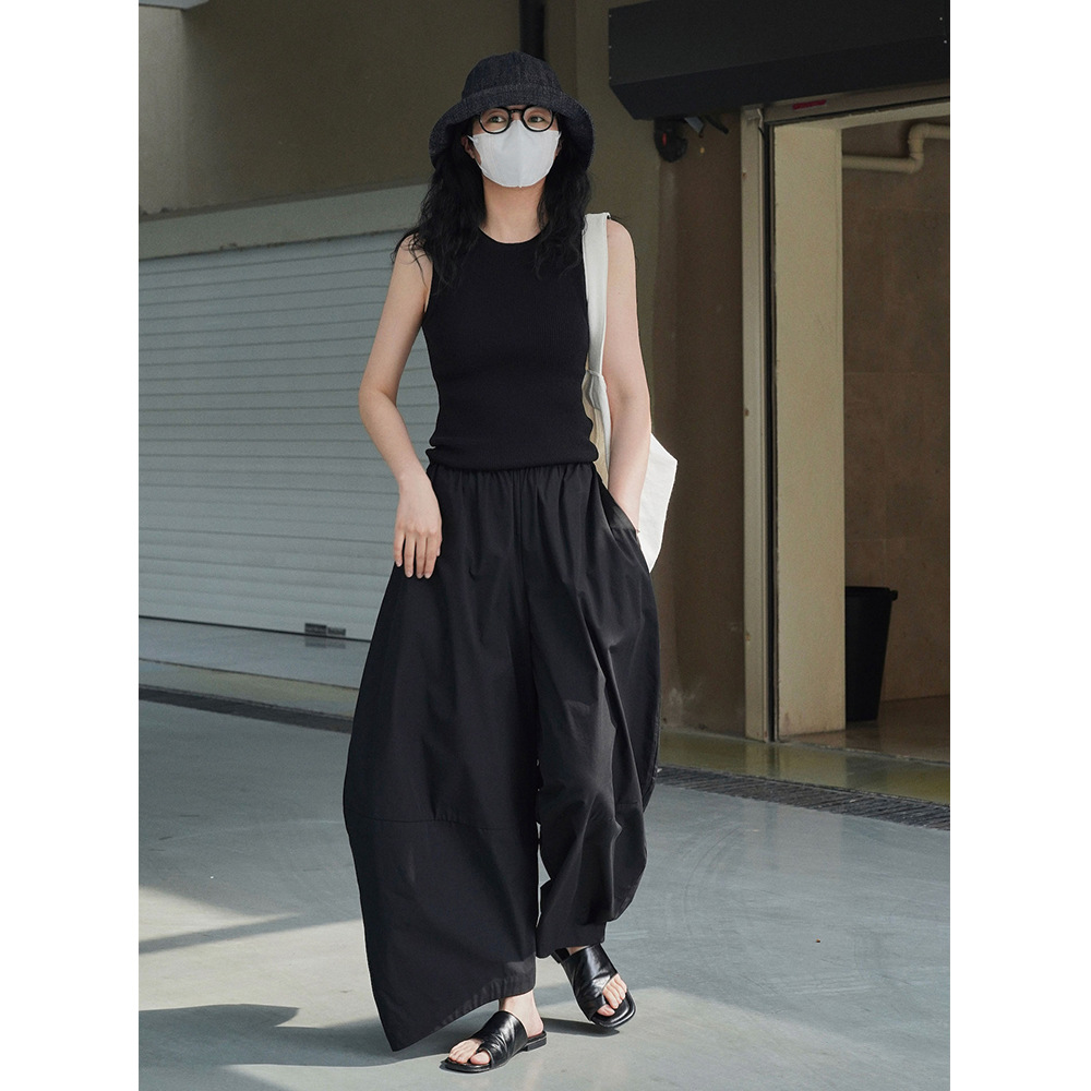 루푸 의류 여름 새로운 일본 스타일 게으른 예술적 아크 와이드 다리 캐주얼 바지 느슨한 슬림 선 스크린 바지 여성