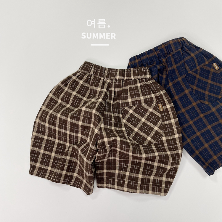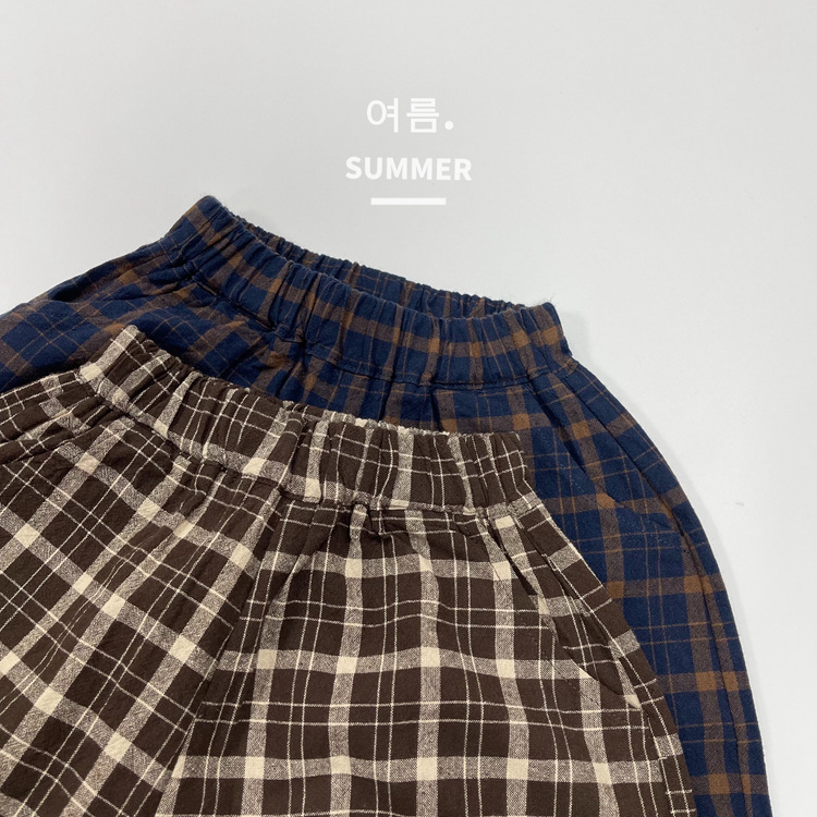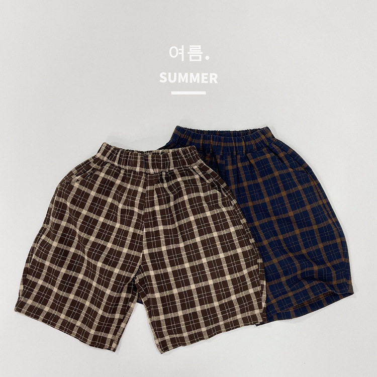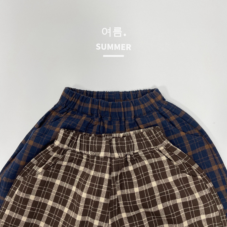 모리 스타일 레트로 여름 새로운 한국 스타일 느슨한 격자 무늬 캐주얼 바지 소년과 소녀를위한 어린이 중간 길이 바지 통기성 바지스토어 가기