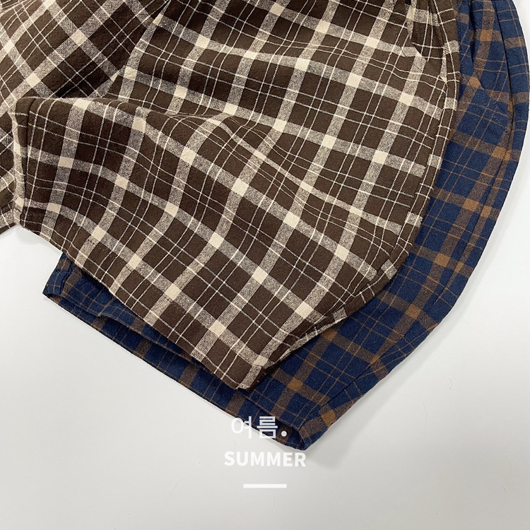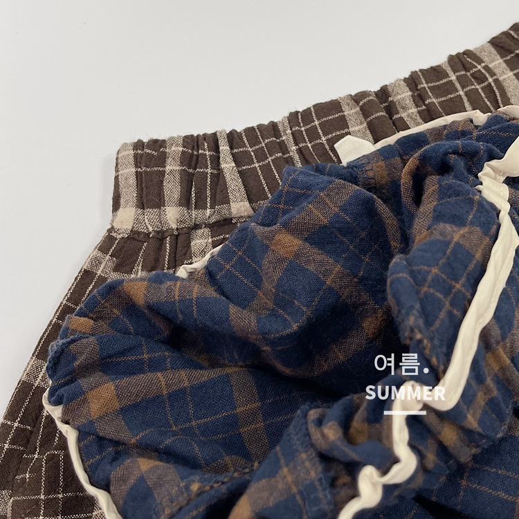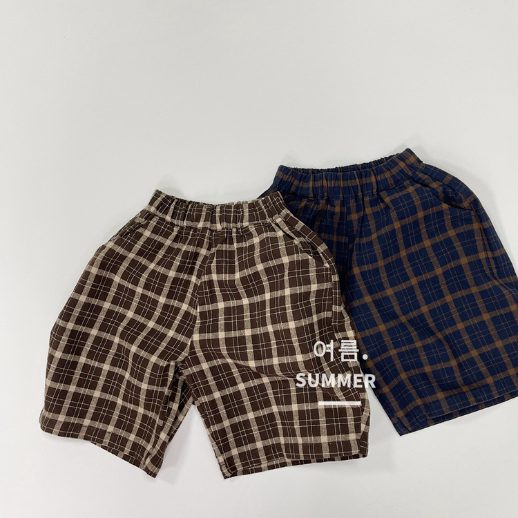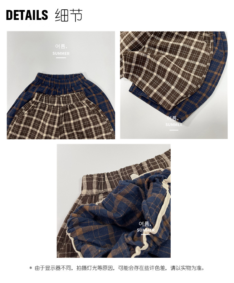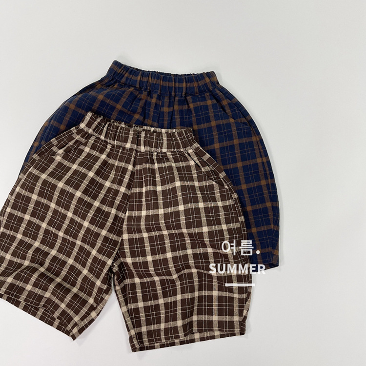 모리 스타일 레트로 여름 새로운 한국 스타일 느슨한 격자 무늬 캐주얼 바지 소년과 소녀를위한 어린이 중간 길이 바지 통기성 바지