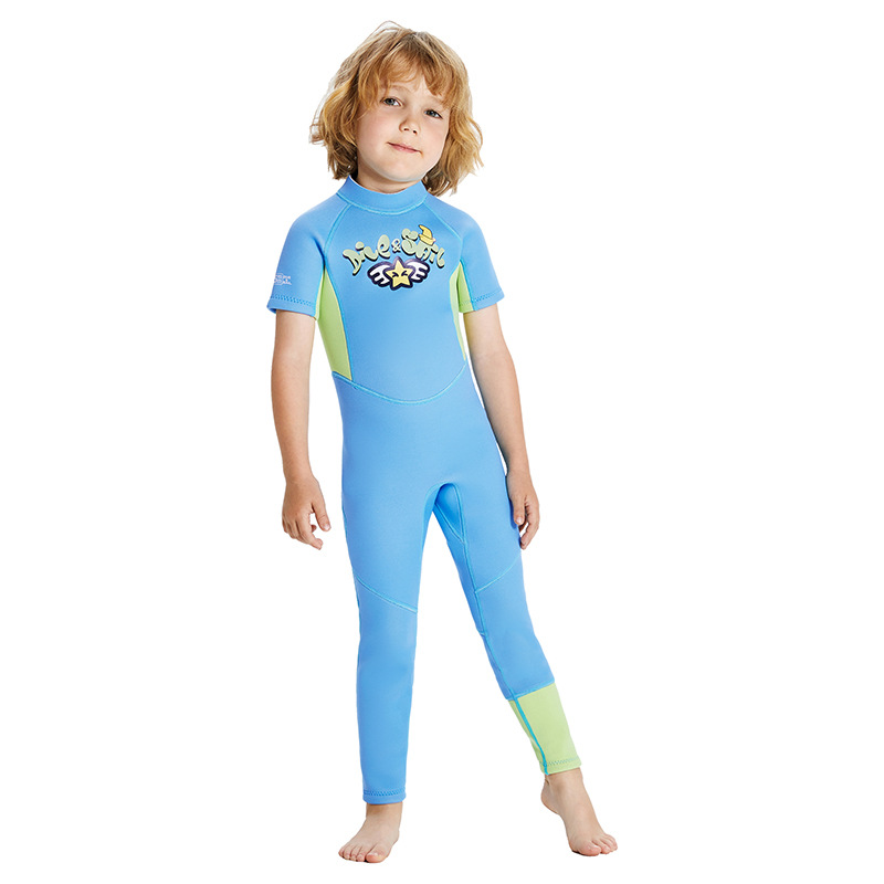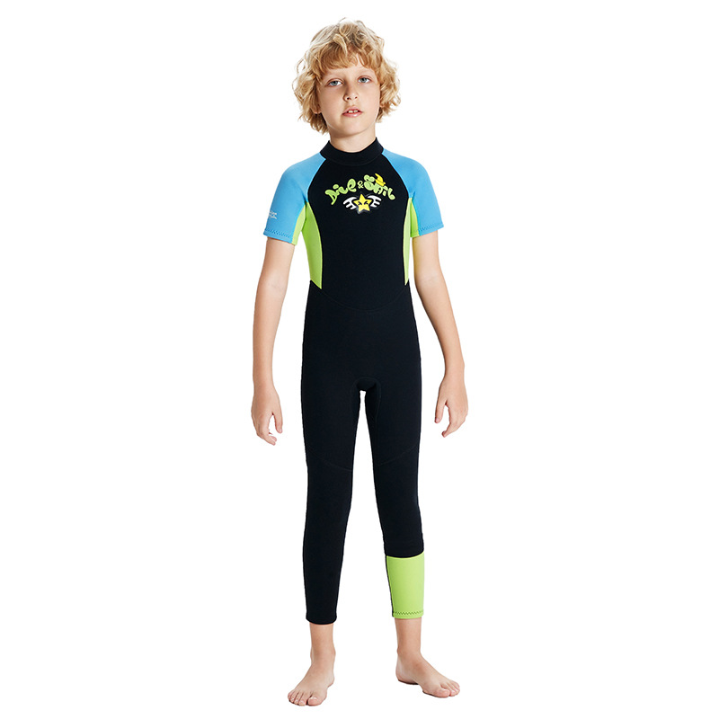 아마존 새로운 어린이 다이빙 세트 2.5mm 원피스 반팔 따뜻한 다이빙 세트 스노클링 서핑 태양 보호 수영복