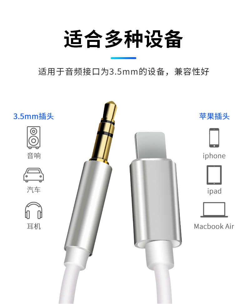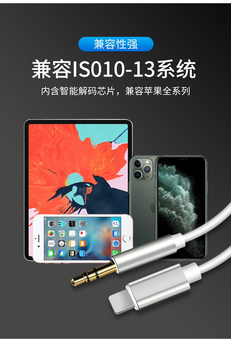 IPhone 14/13/X/8 Apple 번개에 대한 보조 오디오 라인 카 오디오 3.5mm 까지