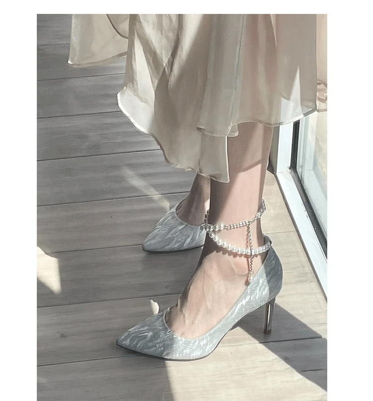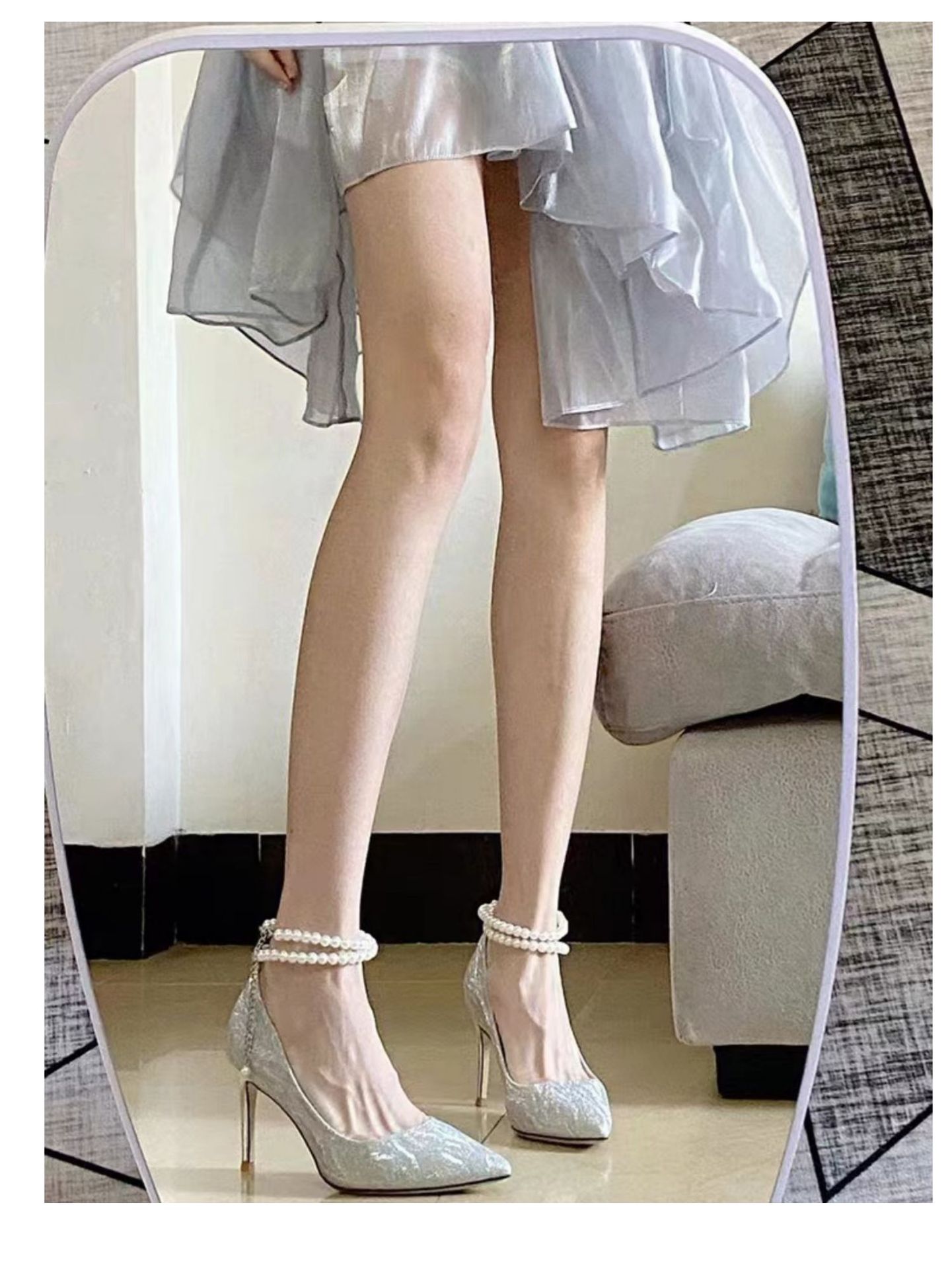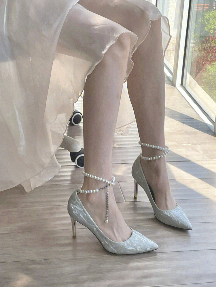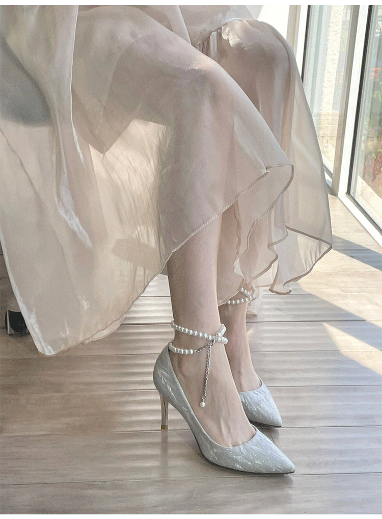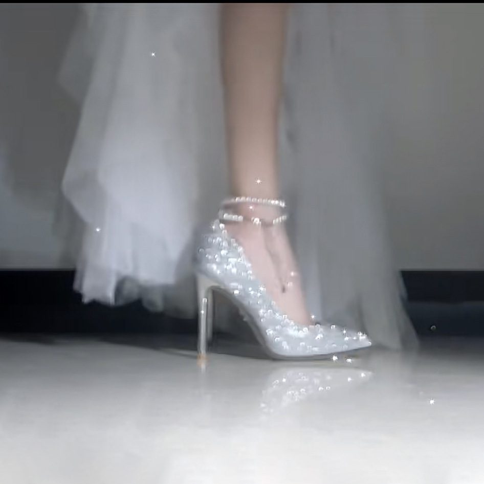 플래시 하이힐 웨딩 신발 신부 신발 웨딩 원피스 진주 부드러운 성인 의식 피곤하지 발 뾰족한 발가락 실버 신발스토어 가기