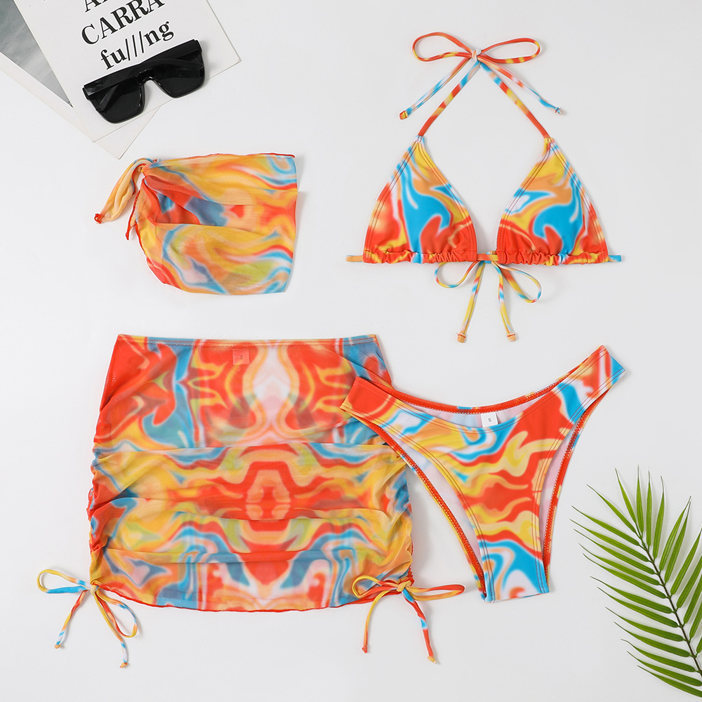2023 유럽 및 미국 대외 무역 수영복 여성용 스플릿 4 피스 세트 스커트 타이 다이 인 AliExpress 크로스 보더 비키니 수영복스토어 가기