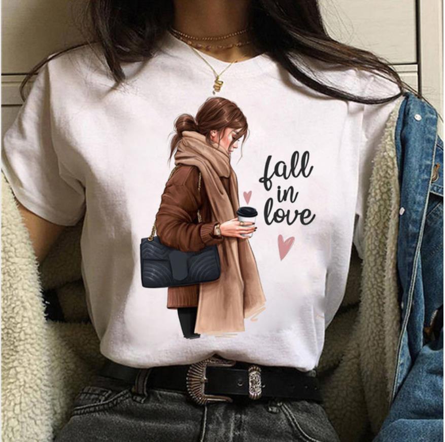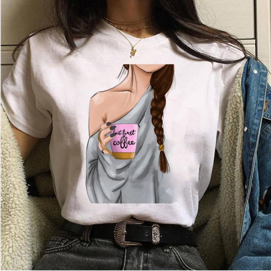 패션 여성 티셔츠 커피 타임과 소녀 프린트 짧은 소매 여성 여름 90 년대 소녀 캐주얼 티셔츠스토어 가기