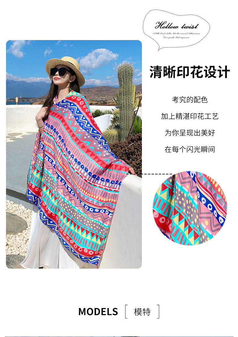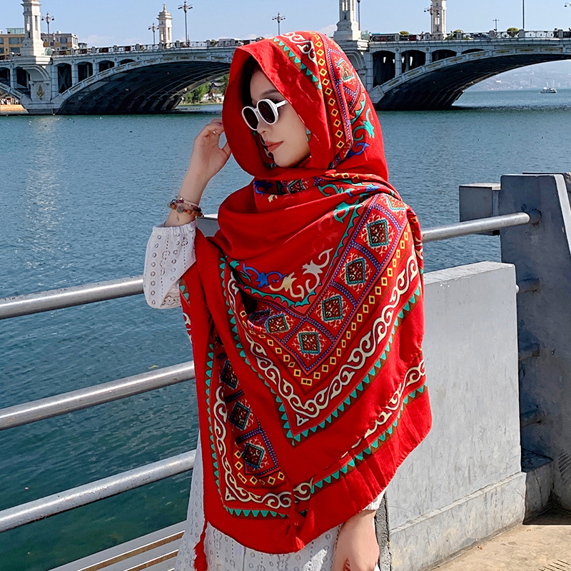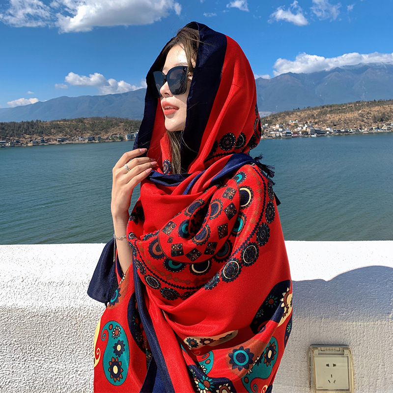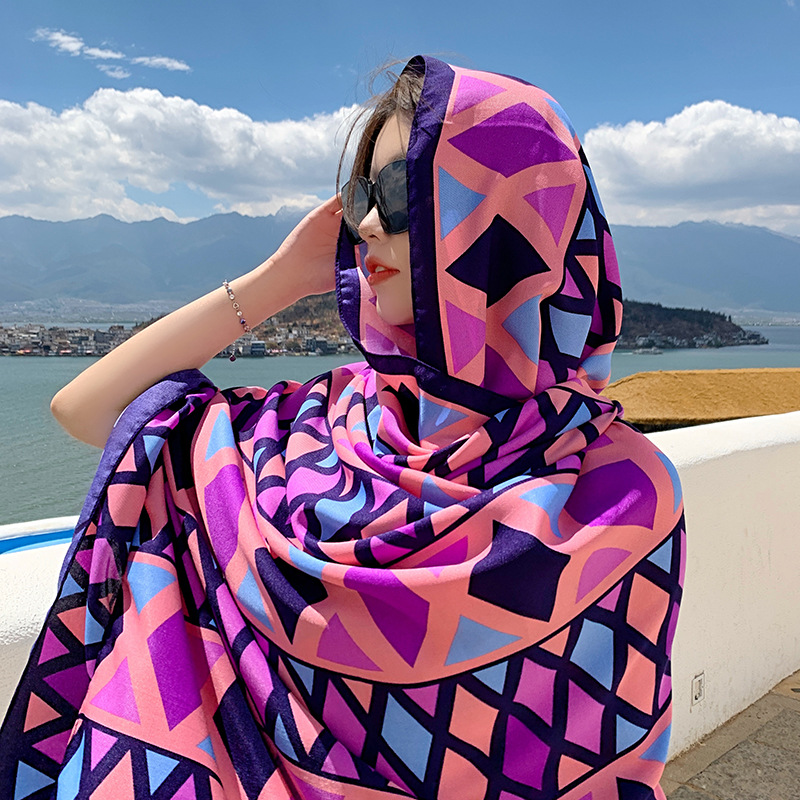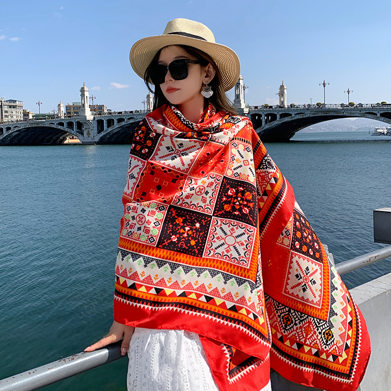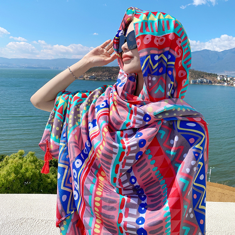 여름 에스닉 스타일 윈난 숄 스카프 차양 자외선 차단제 여행 비치 스카프 실크 스카프 통기성 숄 스카프