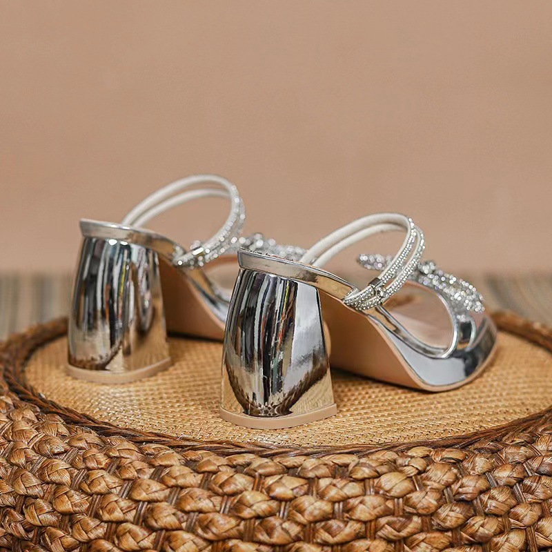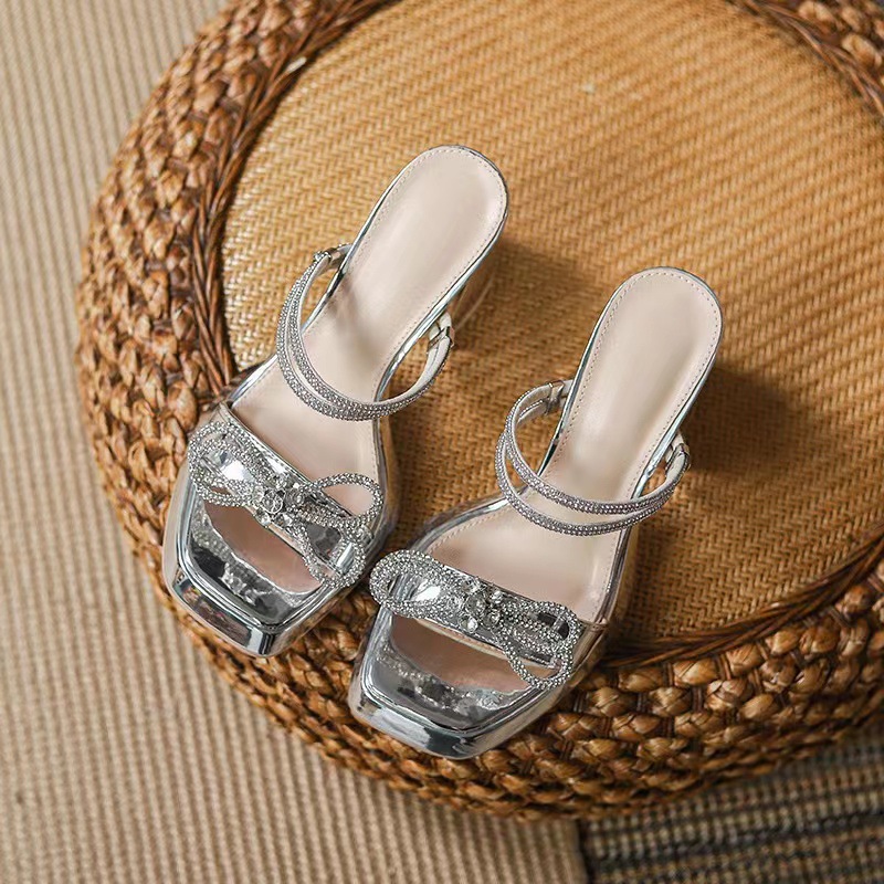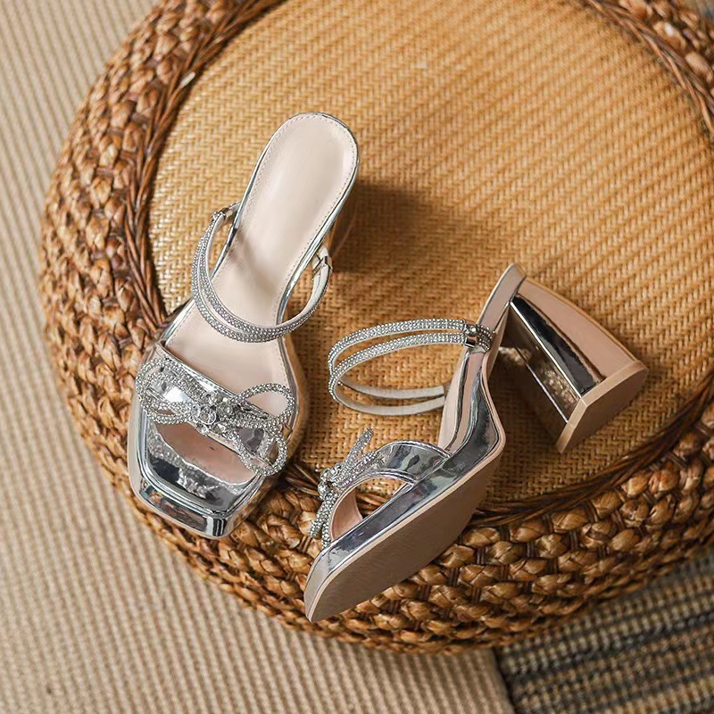 Wan Zi Yan ~ 2023 두꺼운 바닥 슬리퍼 트렌디 한 하이힐 스커트가있는 여성용 고급 투피스 라인 석 샌들