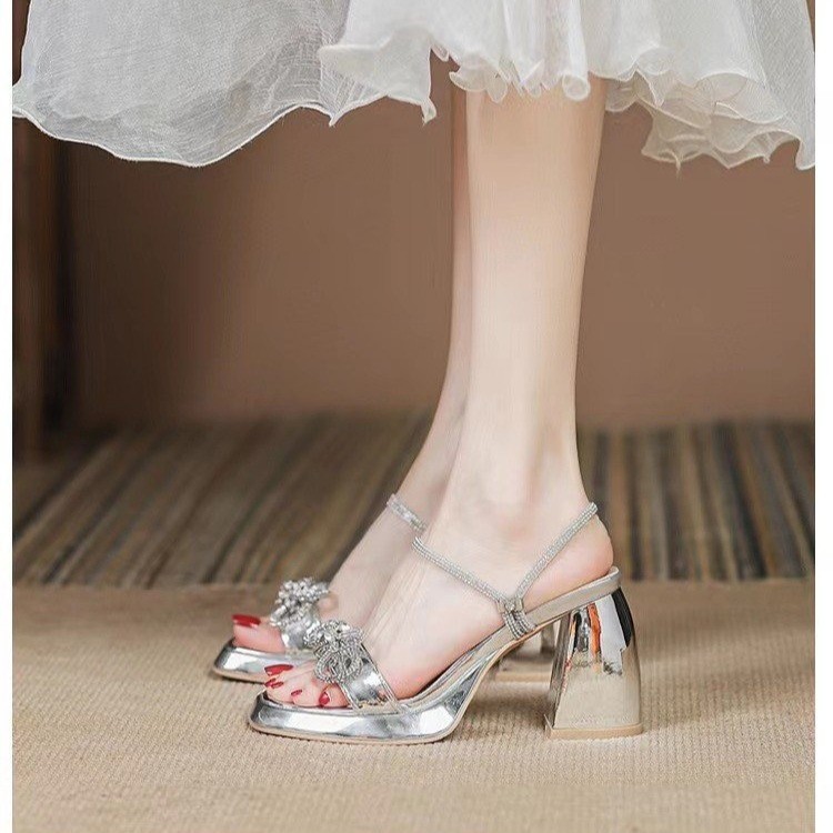 Wan Zi Yan ~ 2023 두꺼운 바닥 슬리퍼 트렌디 한 하이힐 스커트가있는 여성용 고급 투피스 라인 석 샌들스토어 가기